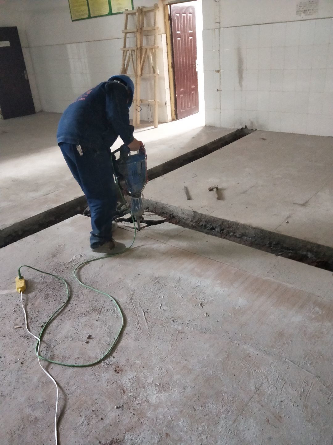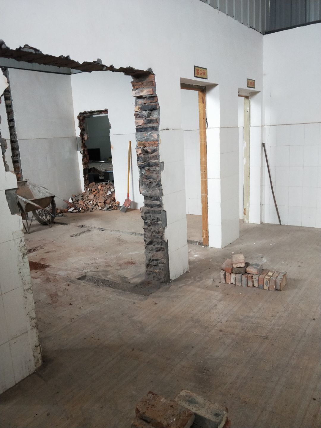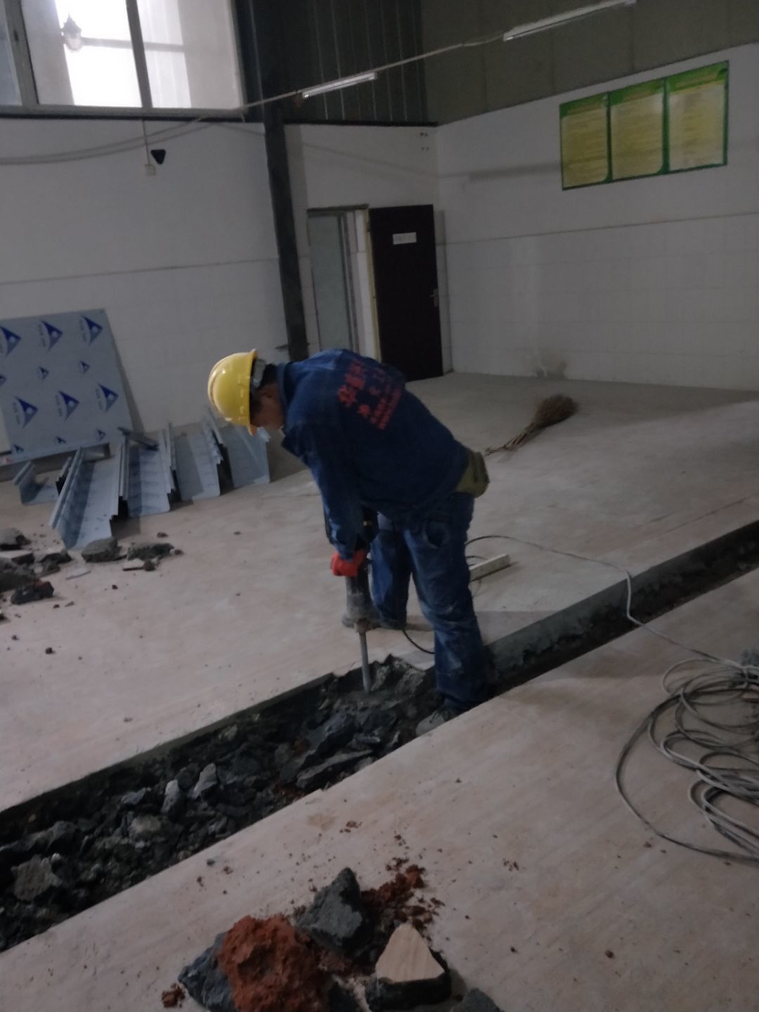 排水溝焊接完成90%,開門洞完成100%,修補門邊完成5%,建渣清理