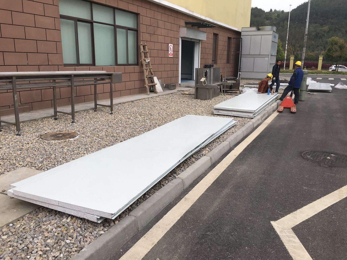 1、彩鋼人員到場,技術交底,安全培訓;2、材料轉運;3、地槽施工。