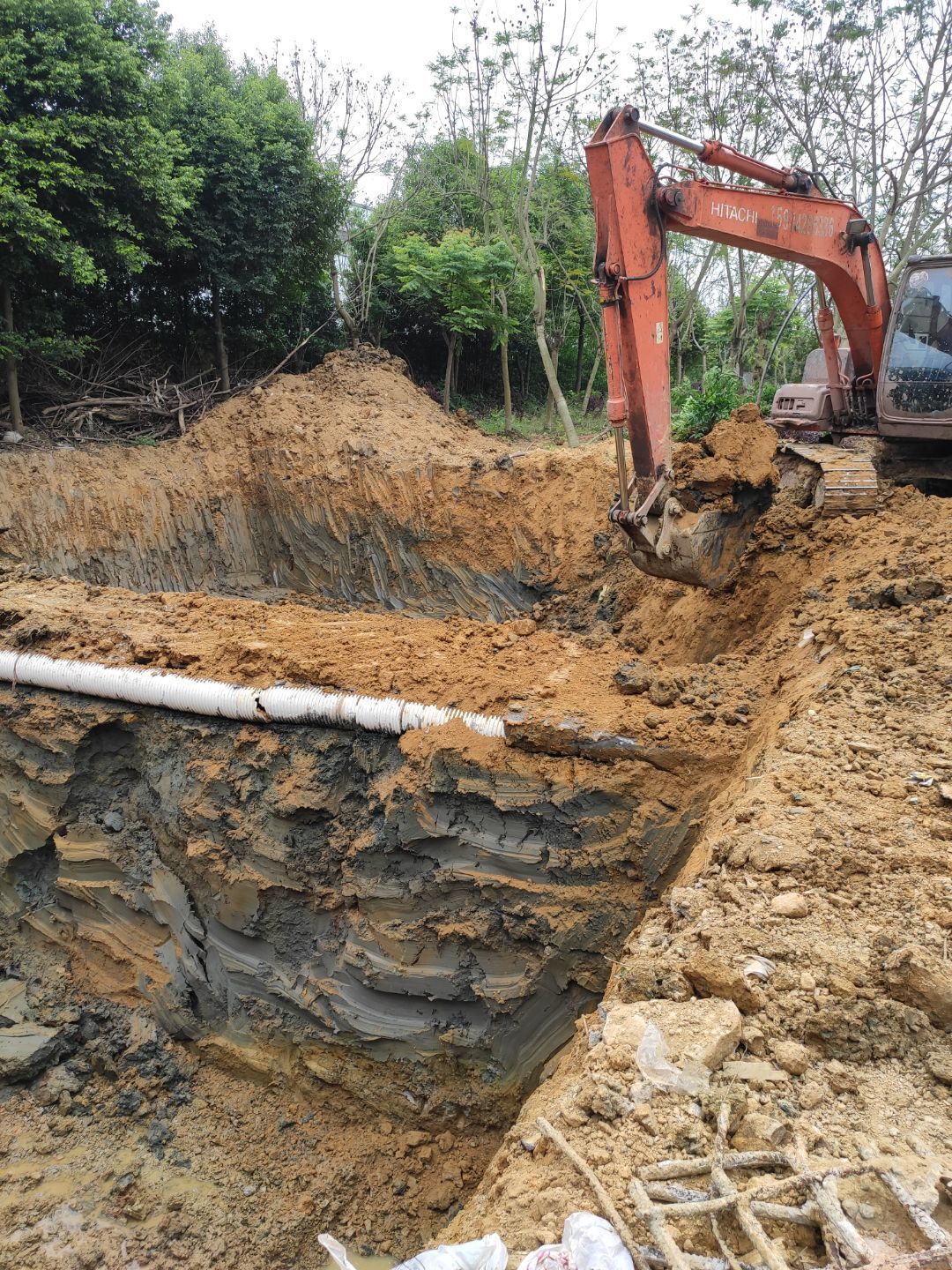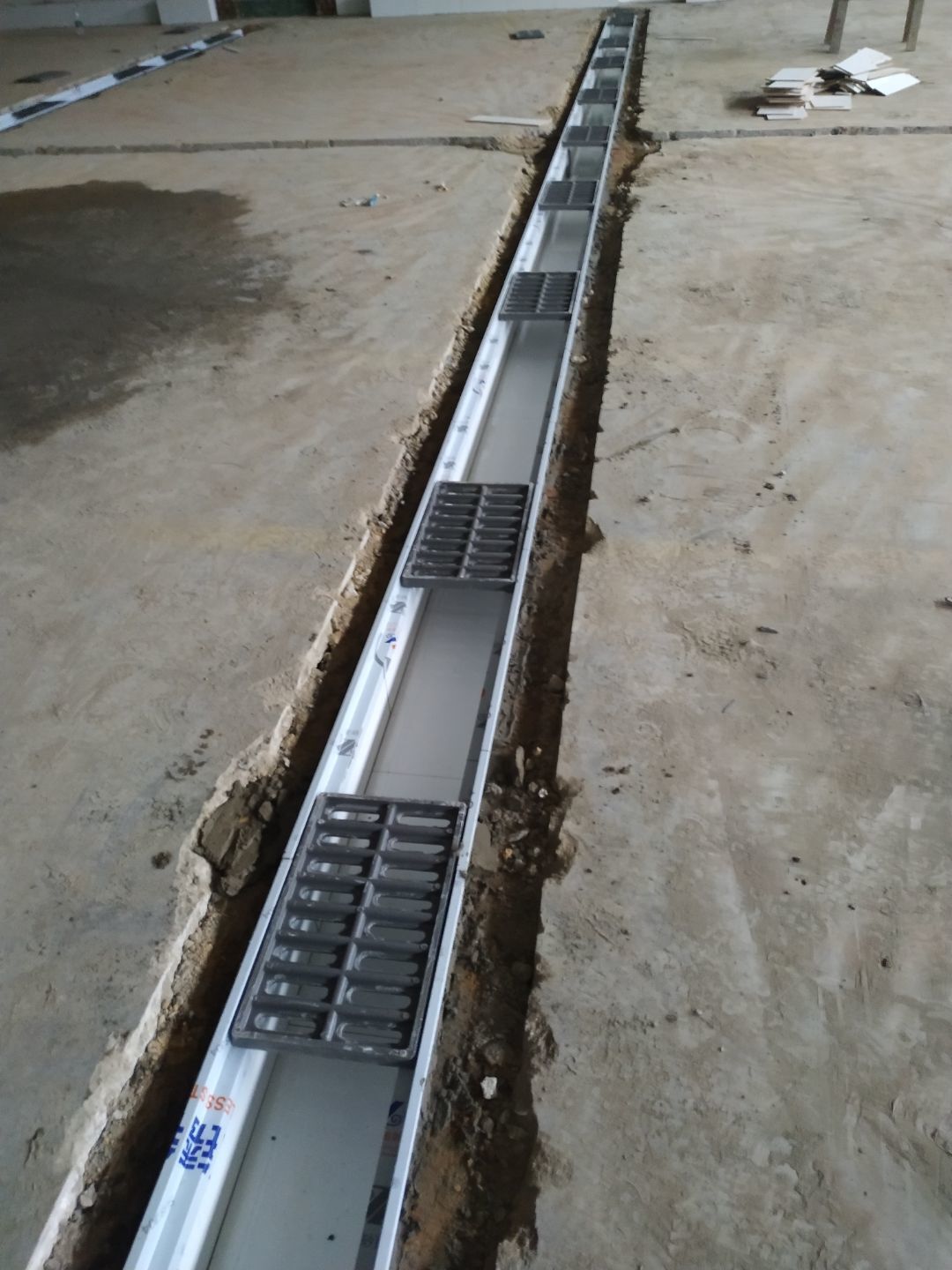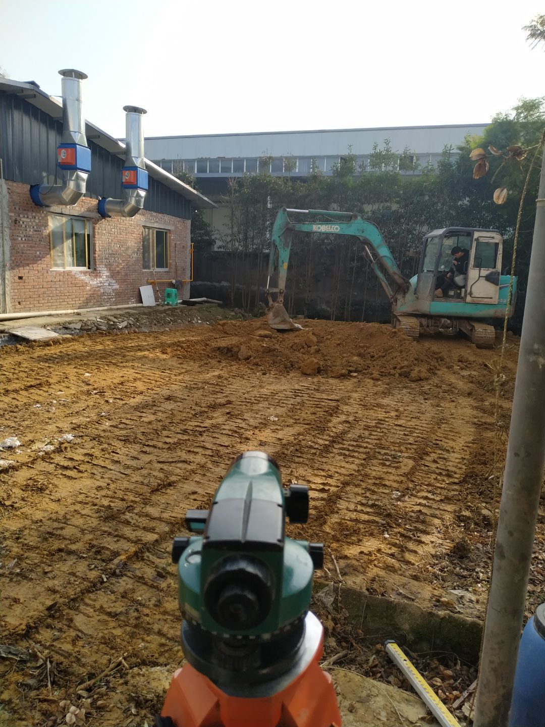 隔油池放線挖掘完成,排水溝和排水管挖掘完成
