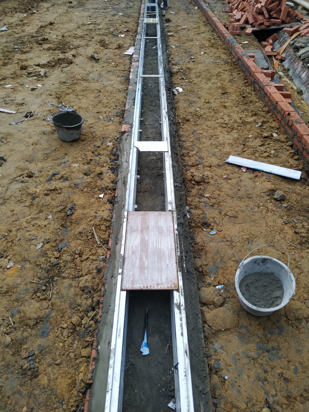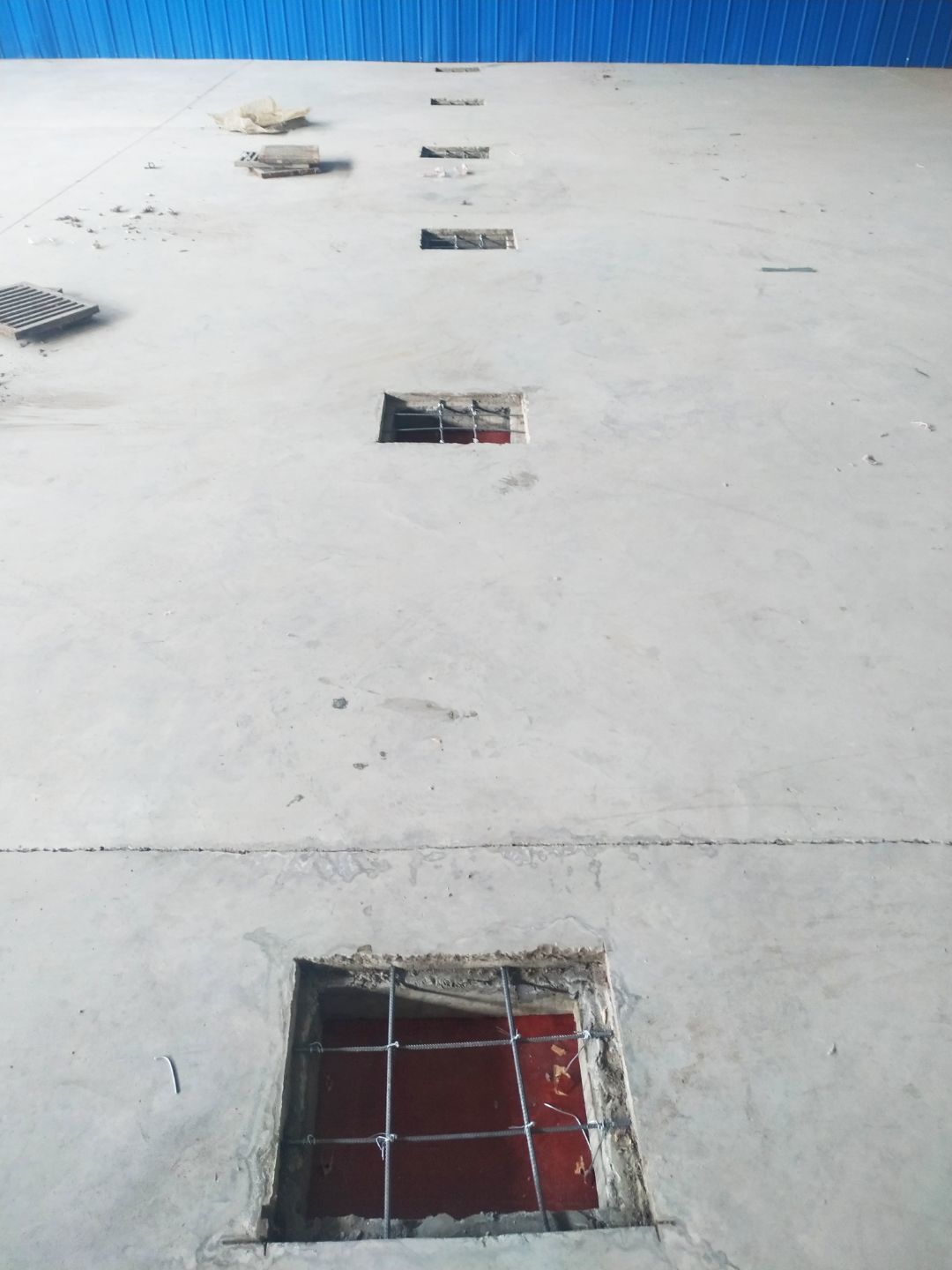 場地平整完成;通風口模板和鋼筋捆扎完成。