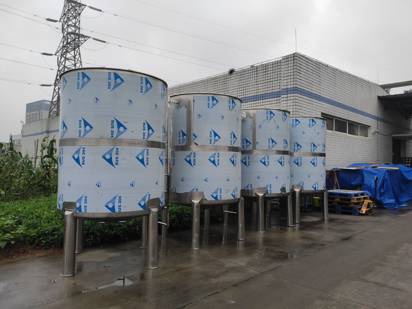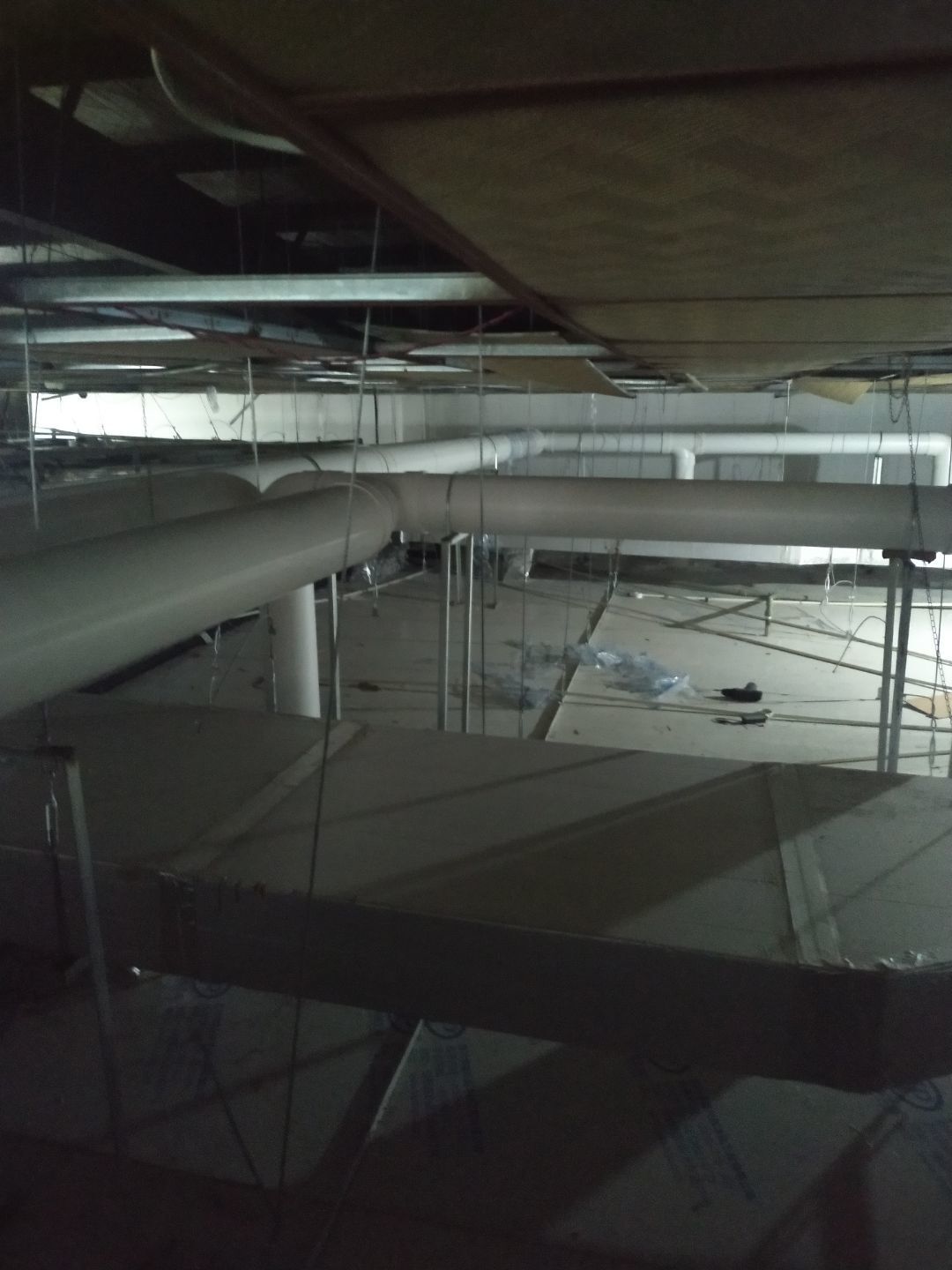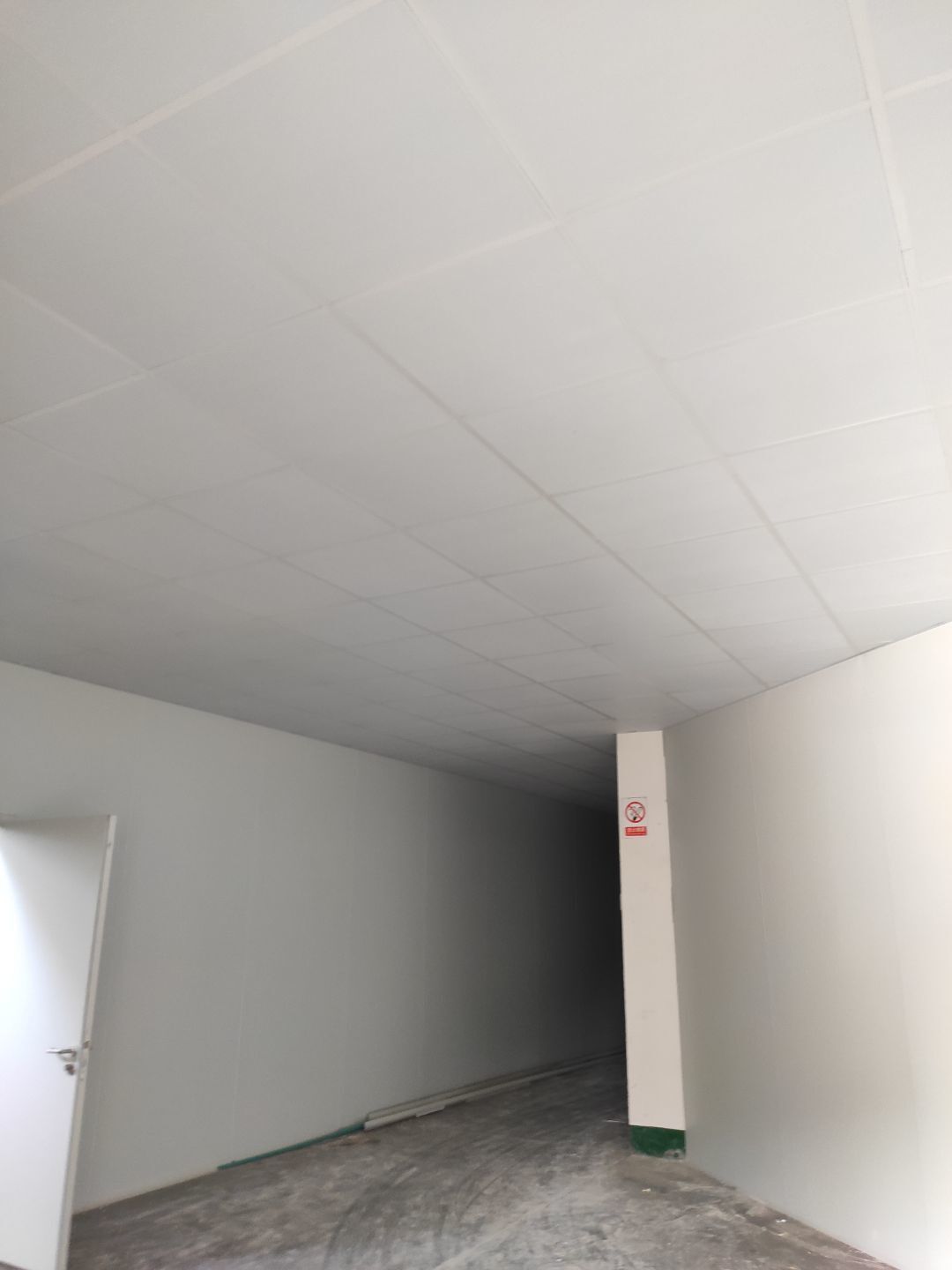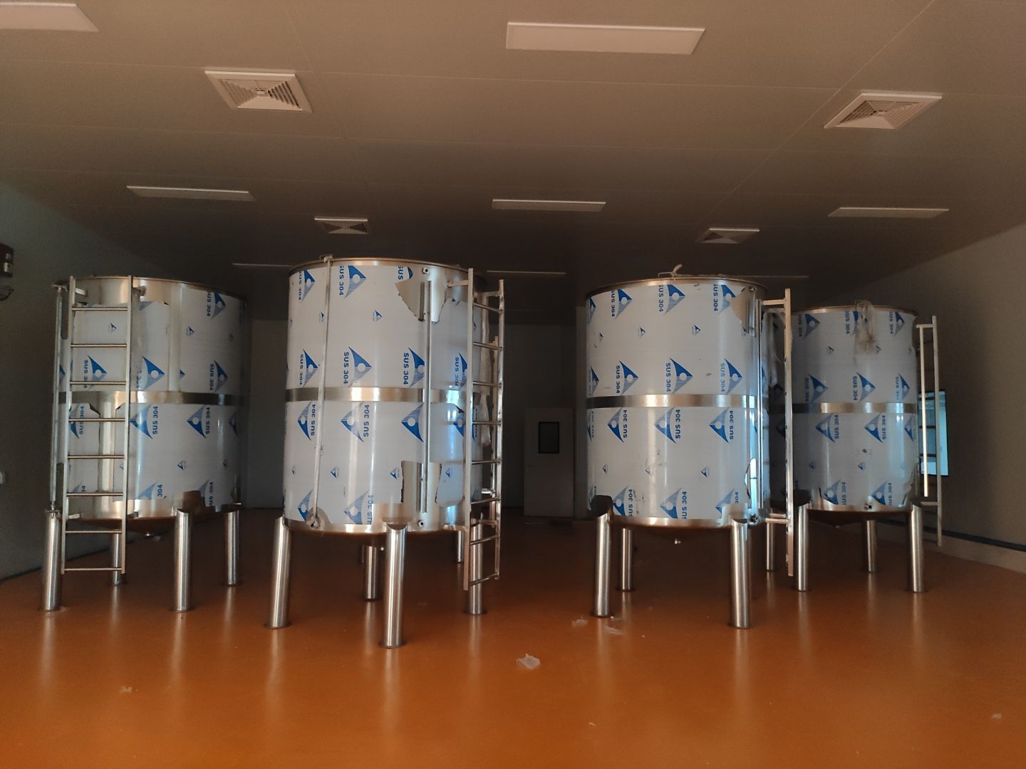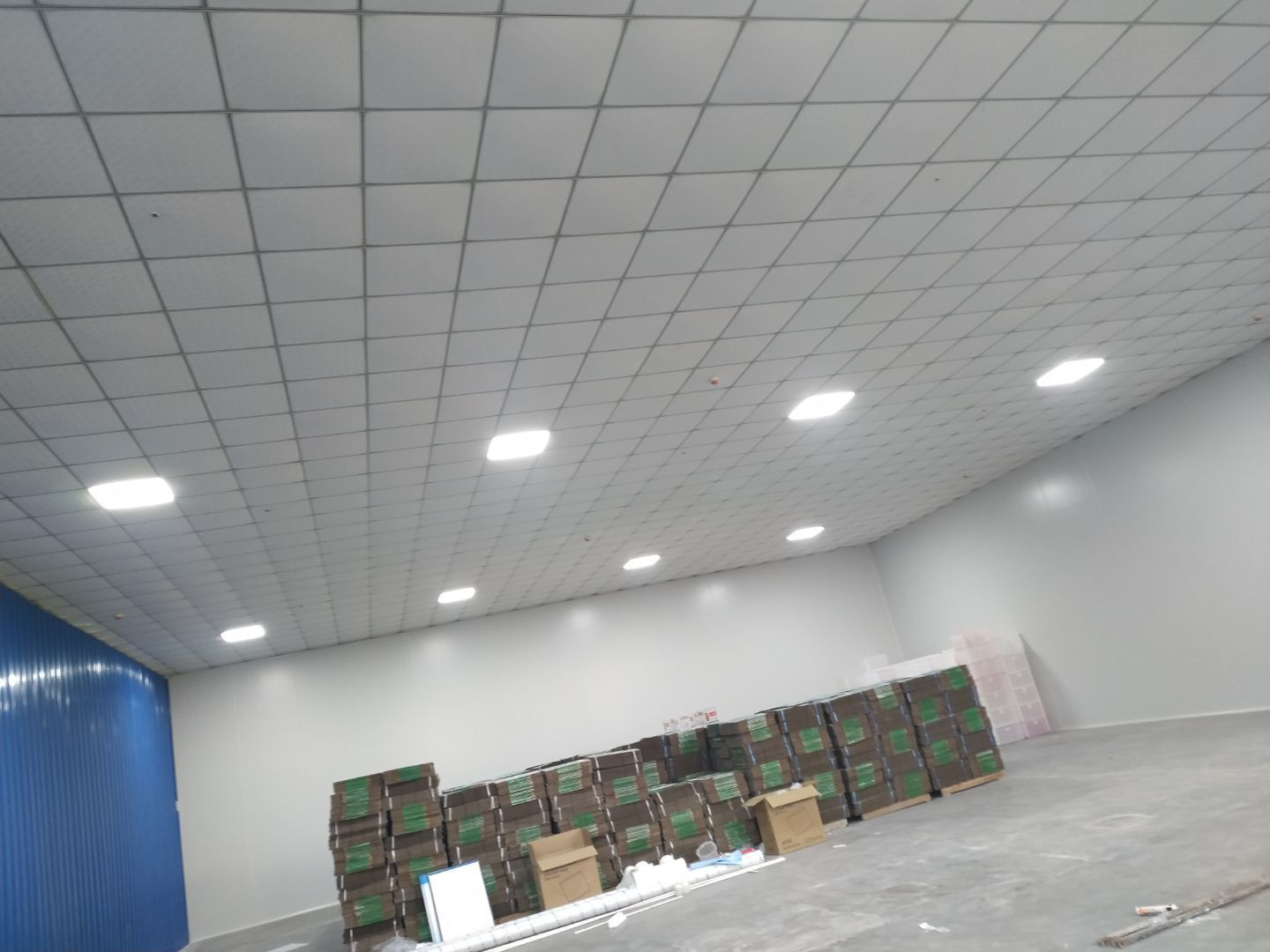 機器設備已到現場 地面施工,打磨完成底漆施工完成 水電工程,車間燈全部通電