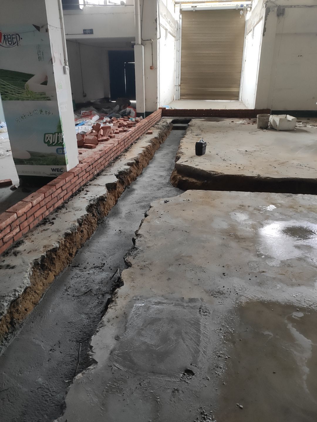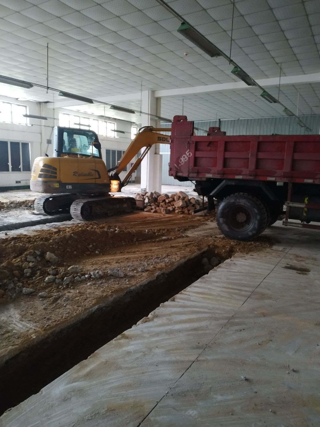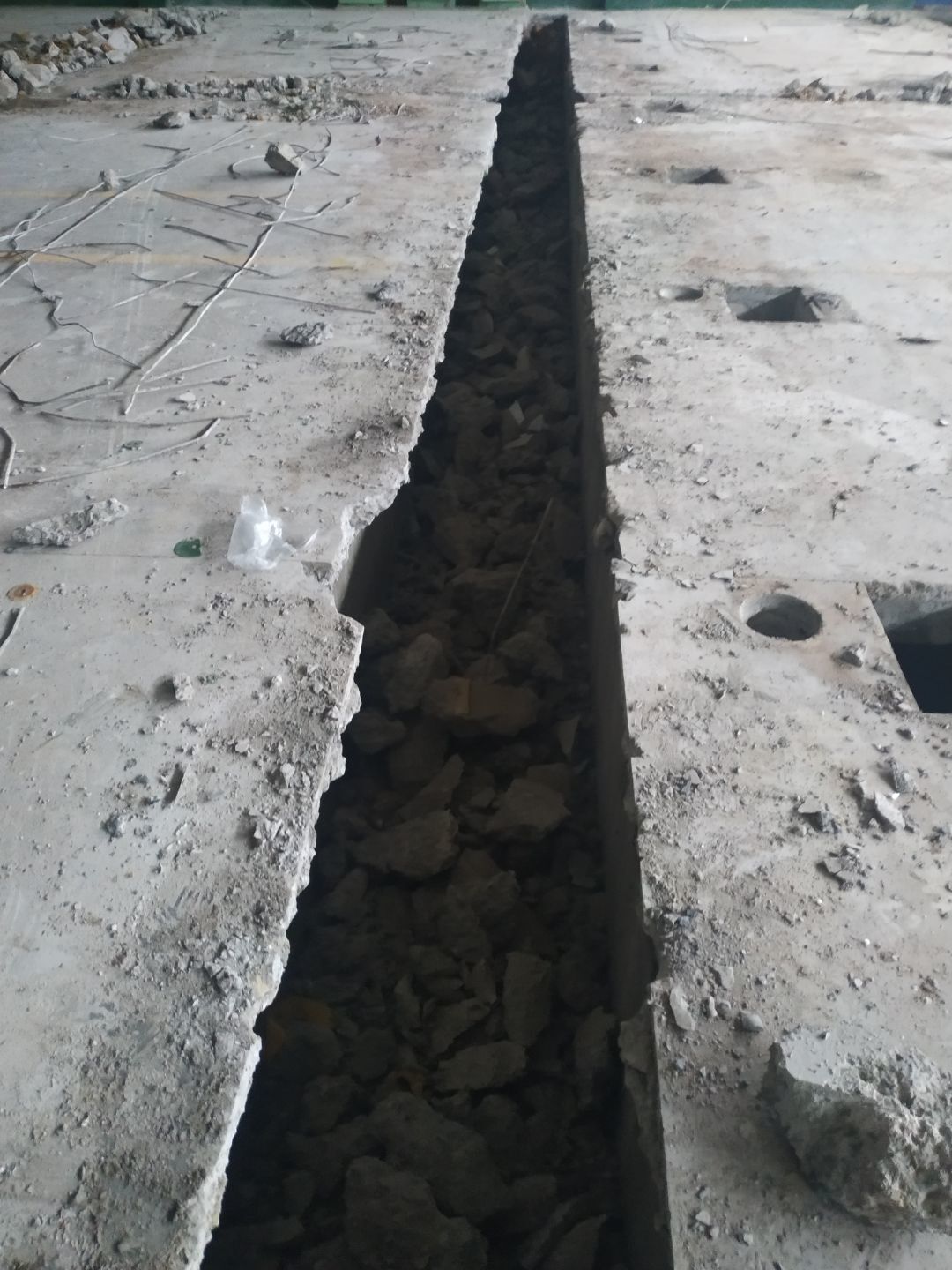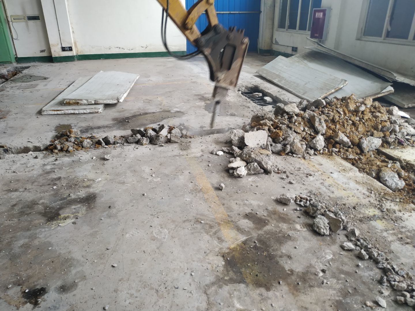 1.室外彩鋼棚拆除完成,2.煉油線排水溝、排水管破碎完成。