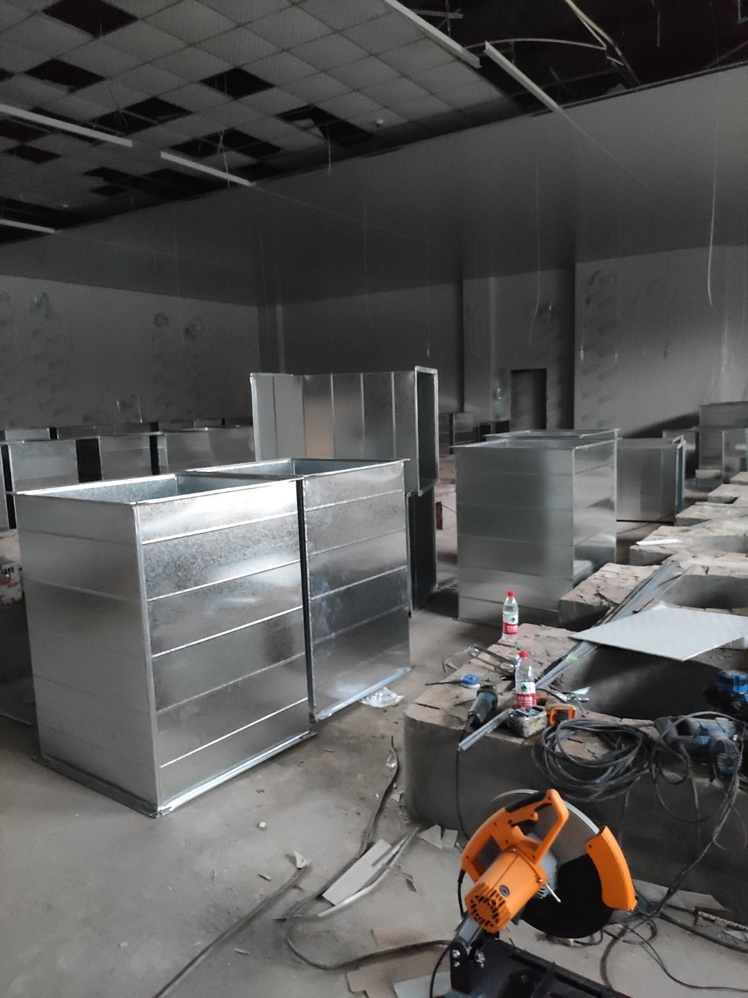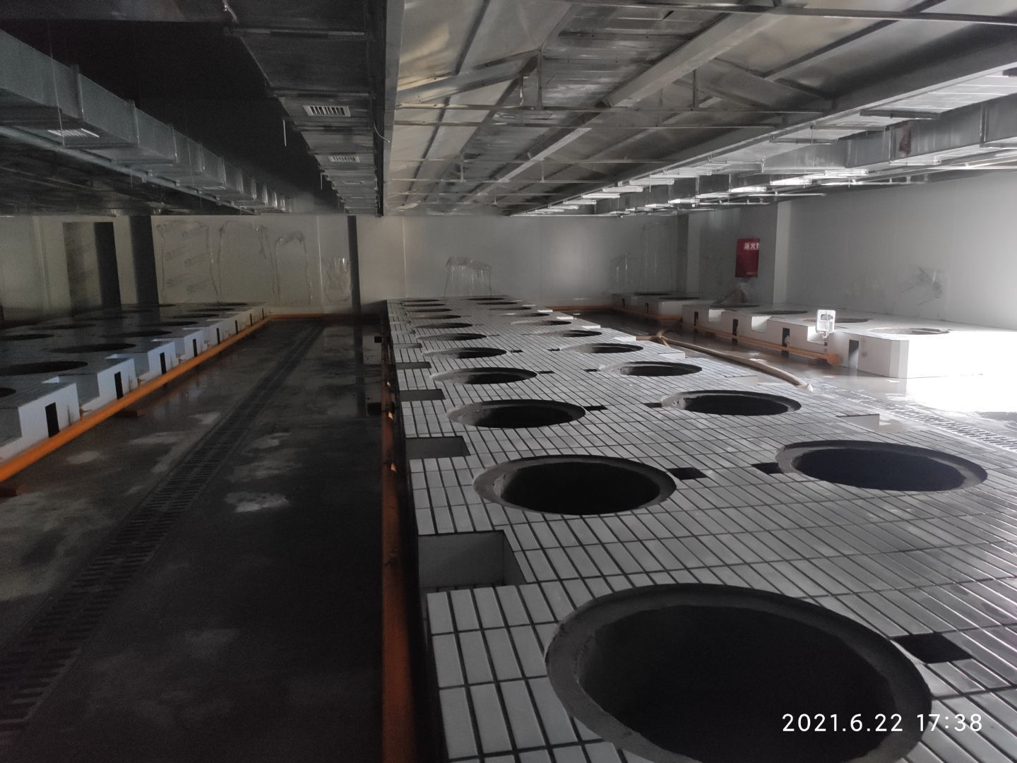 1、灶臺砌磚,新風管道安裝完成70%;2、物流門安裝和加固完成;3、煉油間排水溝折邊件安裝完成90%。