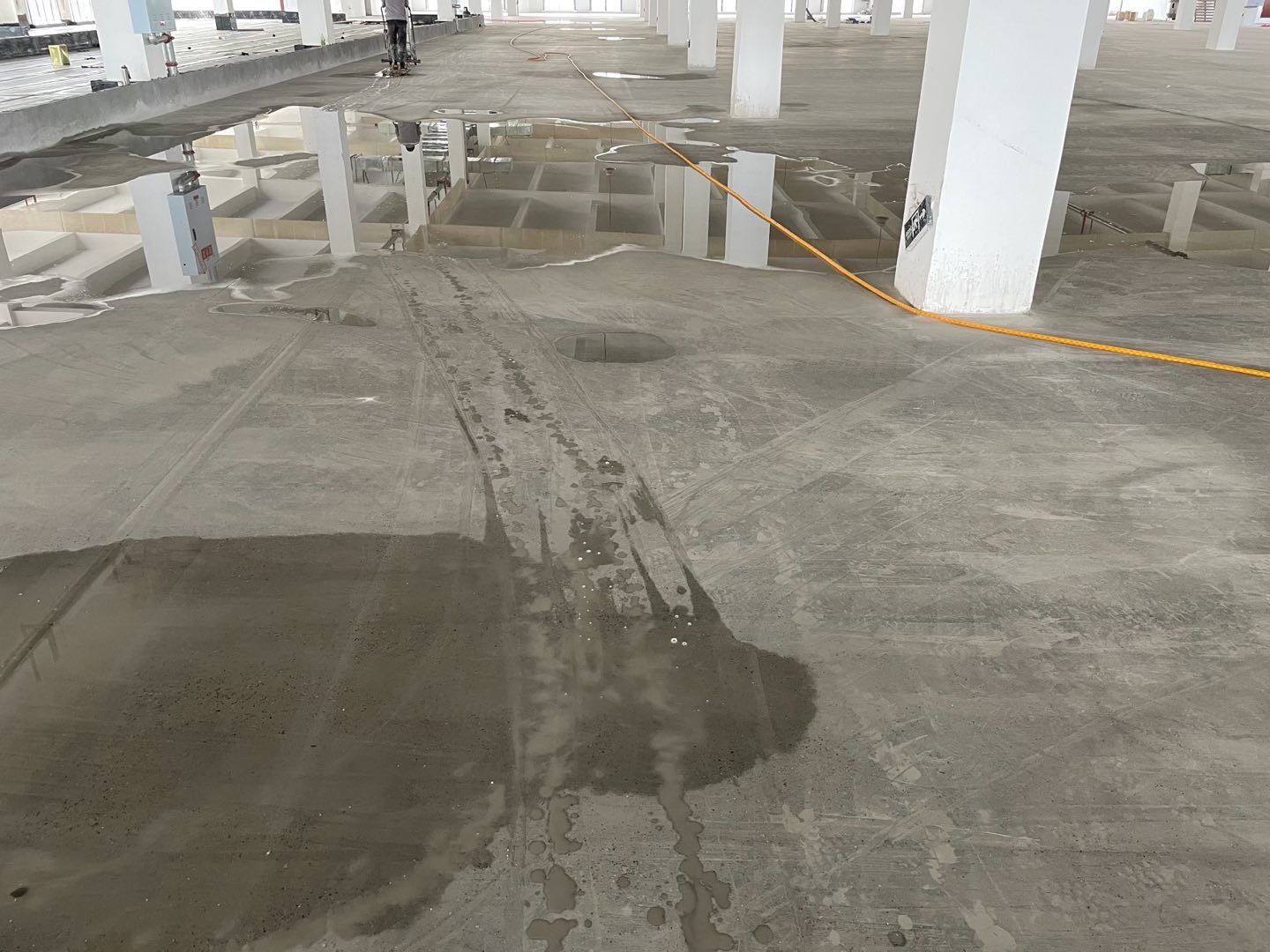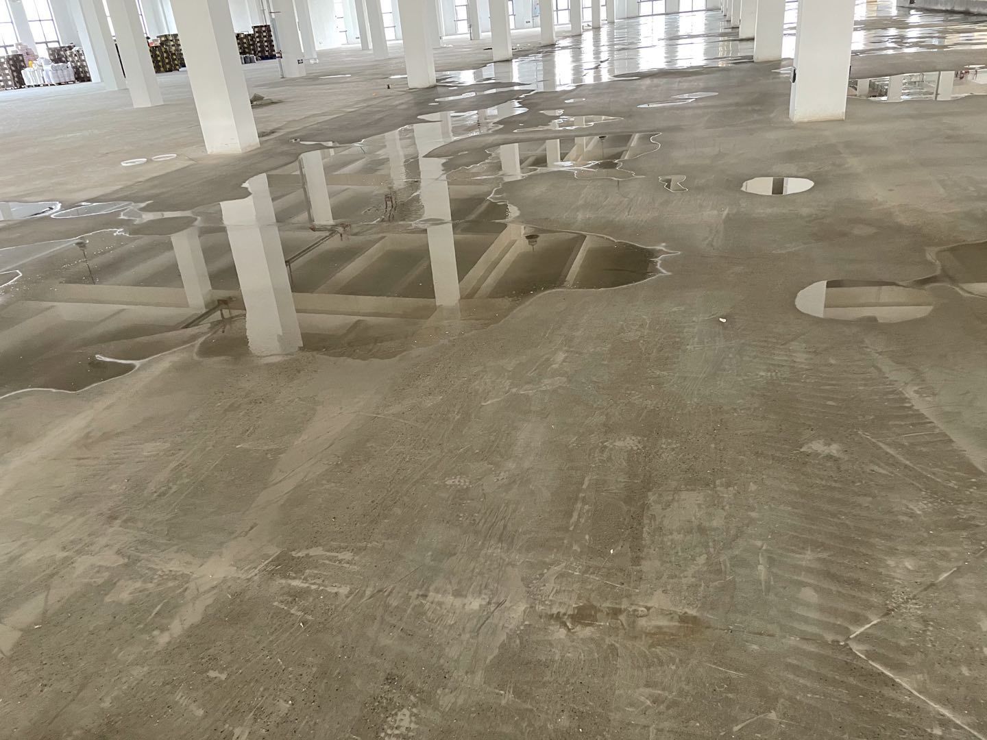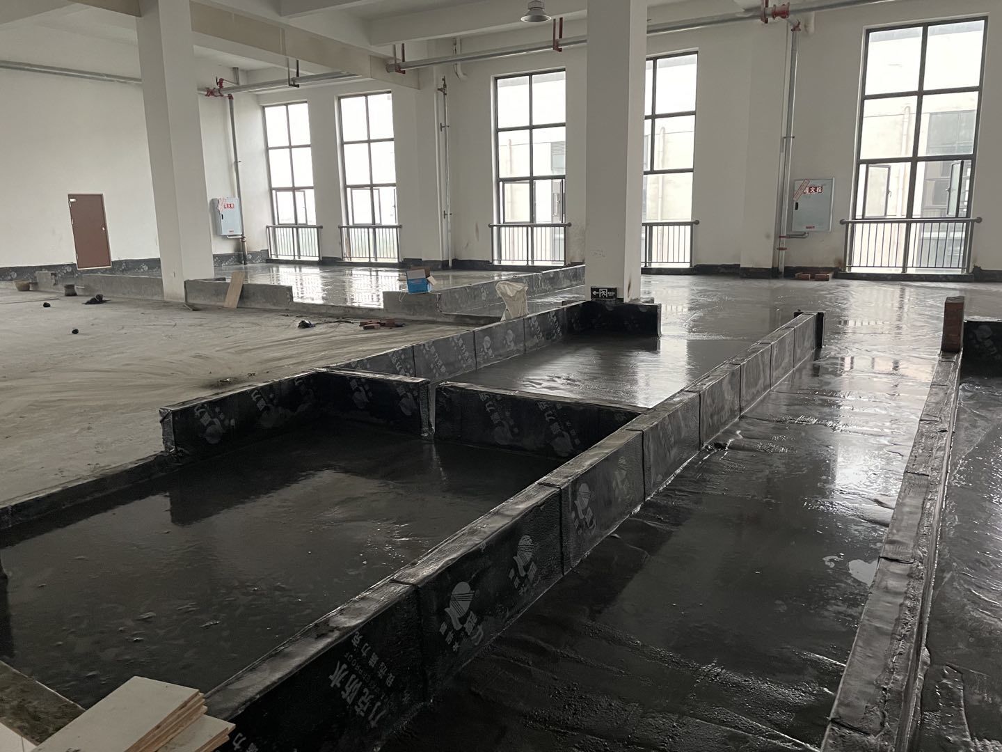 1.混凝土打耙完成,防水修補完成,蓄水試驗;2.金剛砂地坪完成,擋水墻瓷磚完成;3.彩鋼板隔斷材料進場。