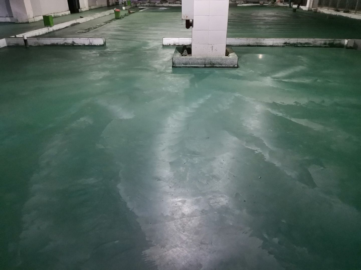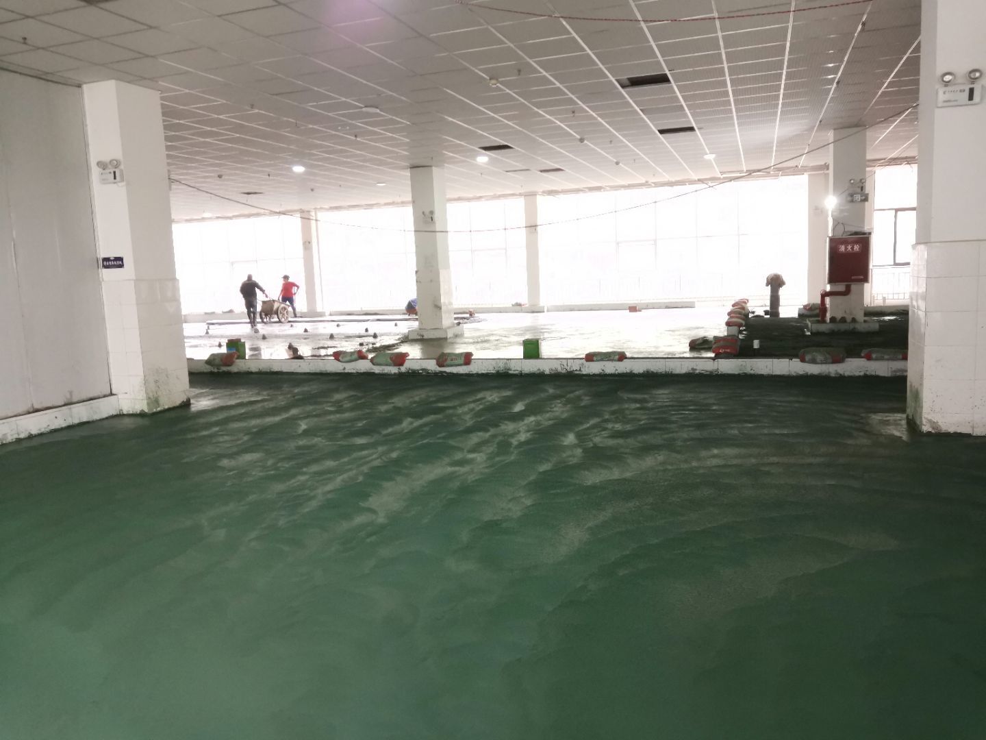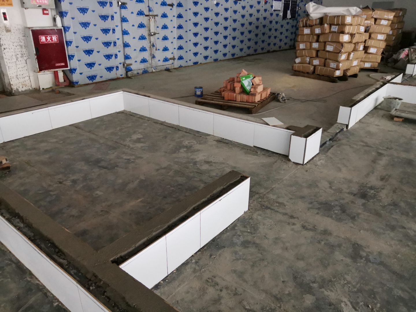 1:金剛砂固化地坪完成; 2:彩鋼墻板完成,收尾完成50%; 3:水電安裝完成90%; 4:腳踏池防水完成50%。