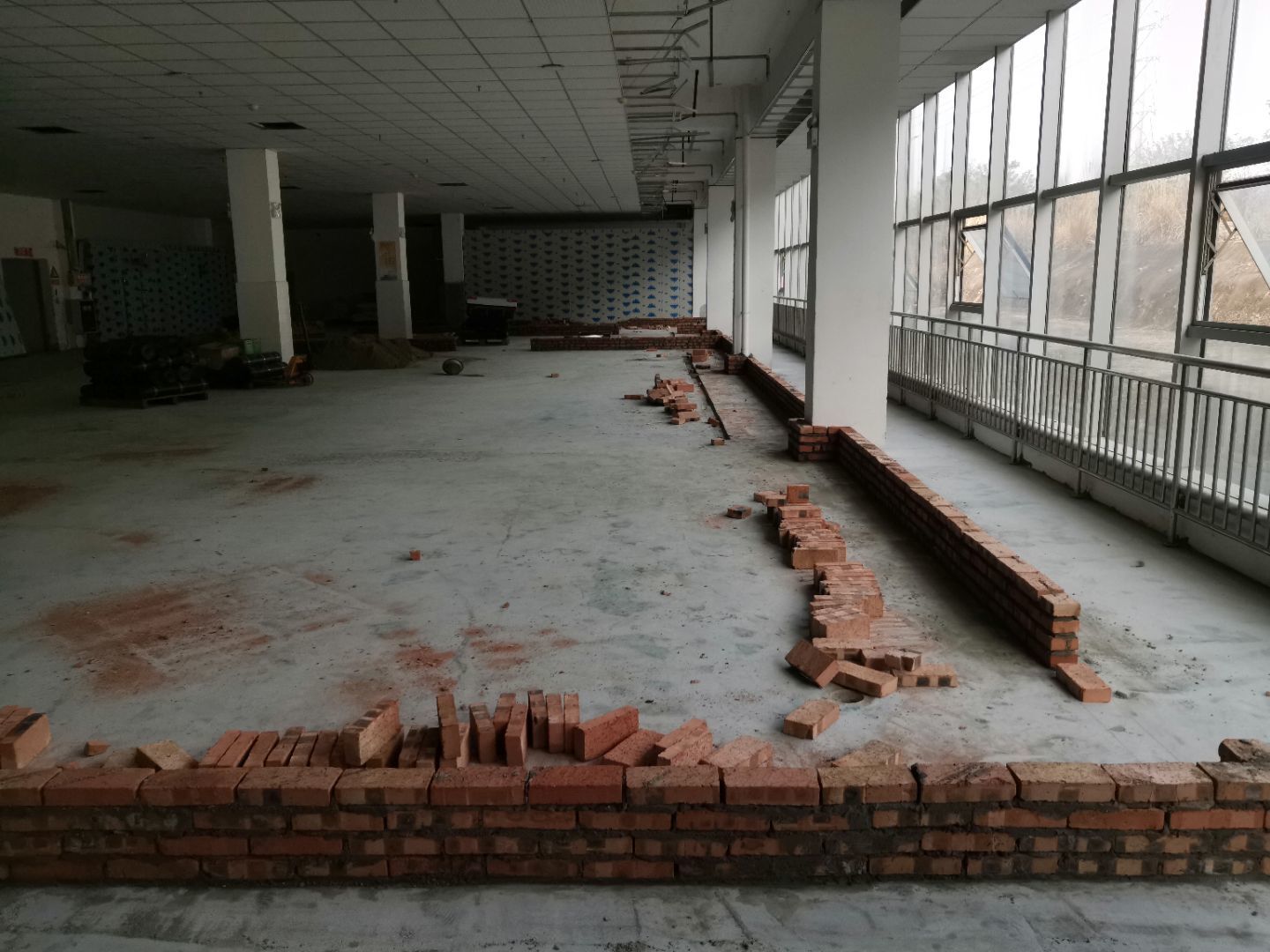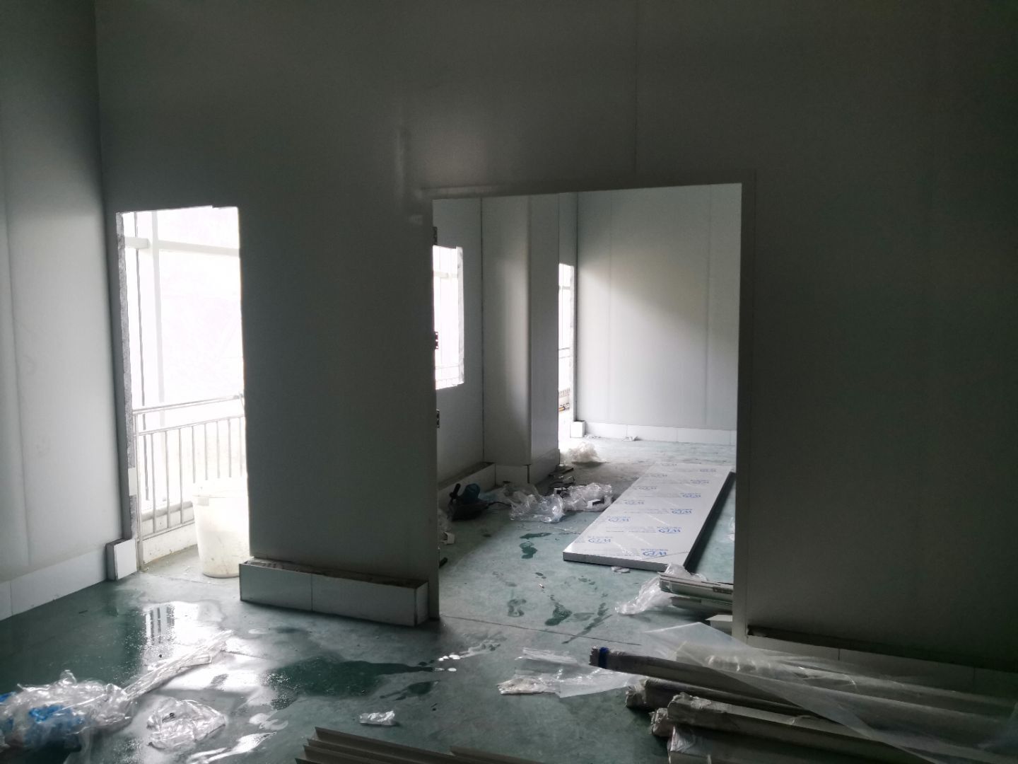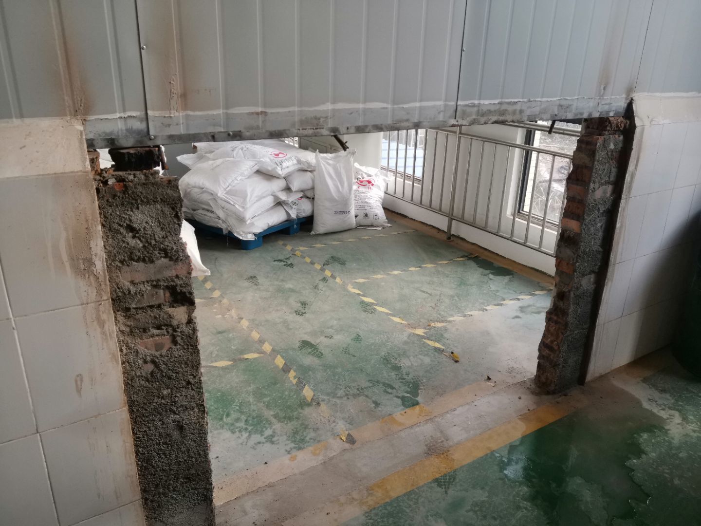 1:金剛砂固化地坪完成; 2:彩鋼墻板完成,收尾完成50%; 3:水電安裝完成90%; 4:腳踏池防水完成50%。