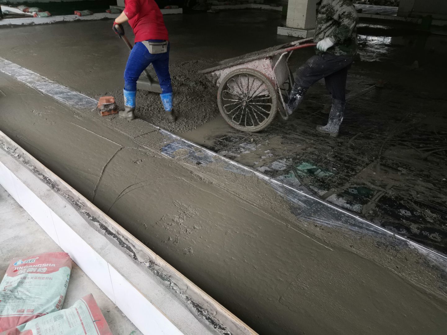1、金剛砂地坪養護;2、彩鋼墻板完成30%;3、地面伸縮縫切割完成。