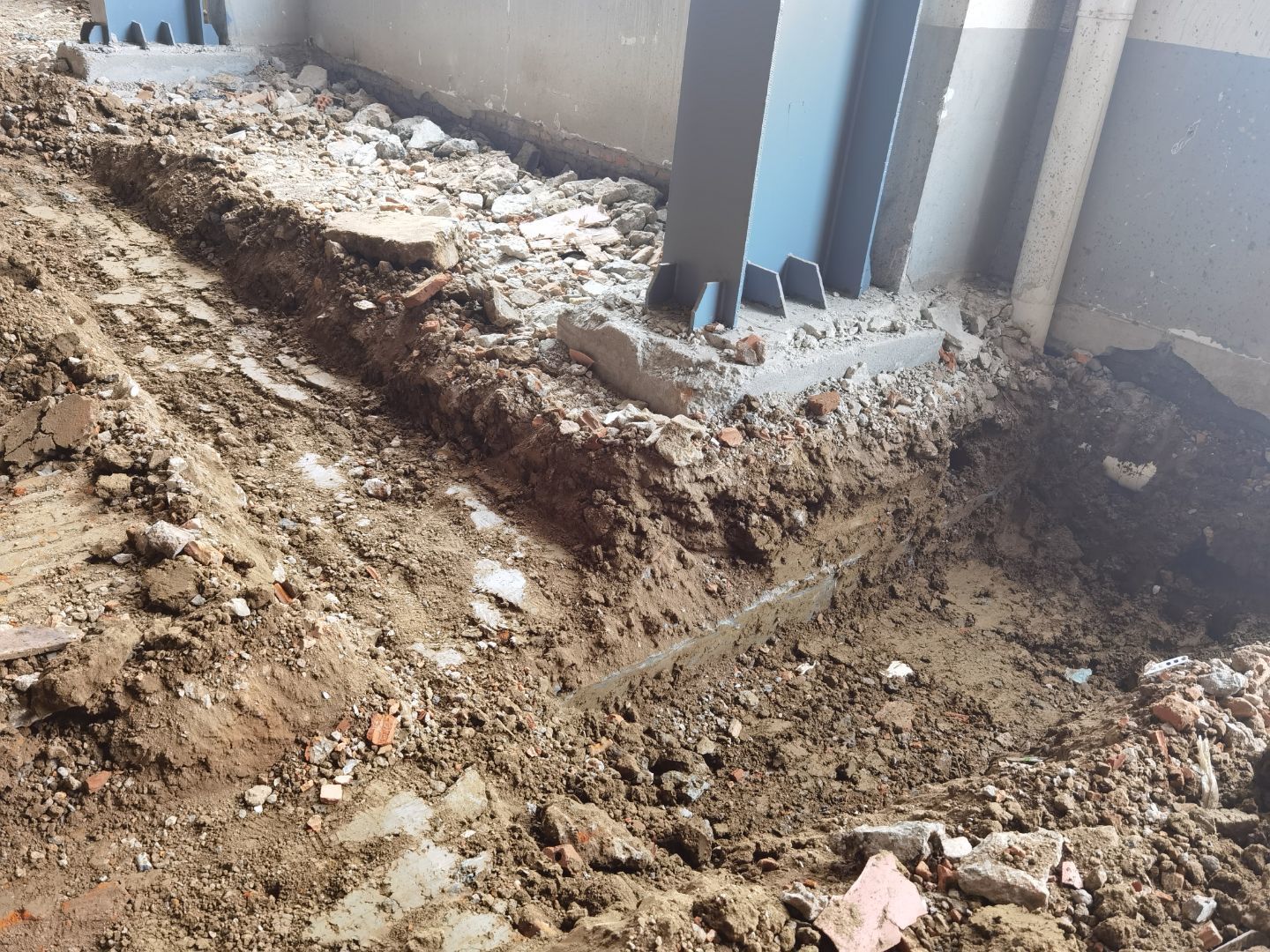 今日施工內(nèi)容 1,室外混凝土澆筑 2, 二層監(jiān)控安裝布線 3,室內(nèi)工藝水開始施工 4,工藝設(shè)備布線放線 5,樓梯彩板圓弧收尾 6,電纜敷設(shè) 配電箱壓頭 7,一二樓煙感安裝 8,二樓鋁扣板邊角鋁施工 9,一層彩板收尾 打膠 10,室外地面污水管清挖