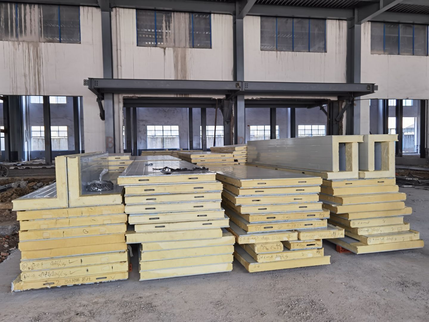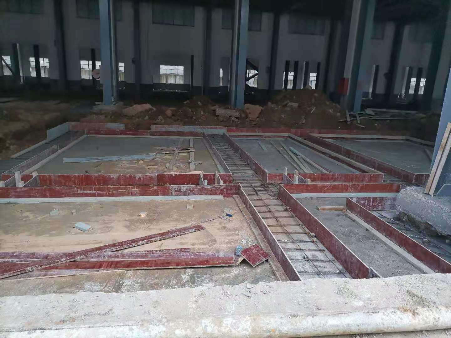 1,排水管安裝 2,鋼構(gòu)施工 3,場地建渣清理 4,凍庫板材到場 安裝 5,廁所墻體砌筑 6,混凝土施工