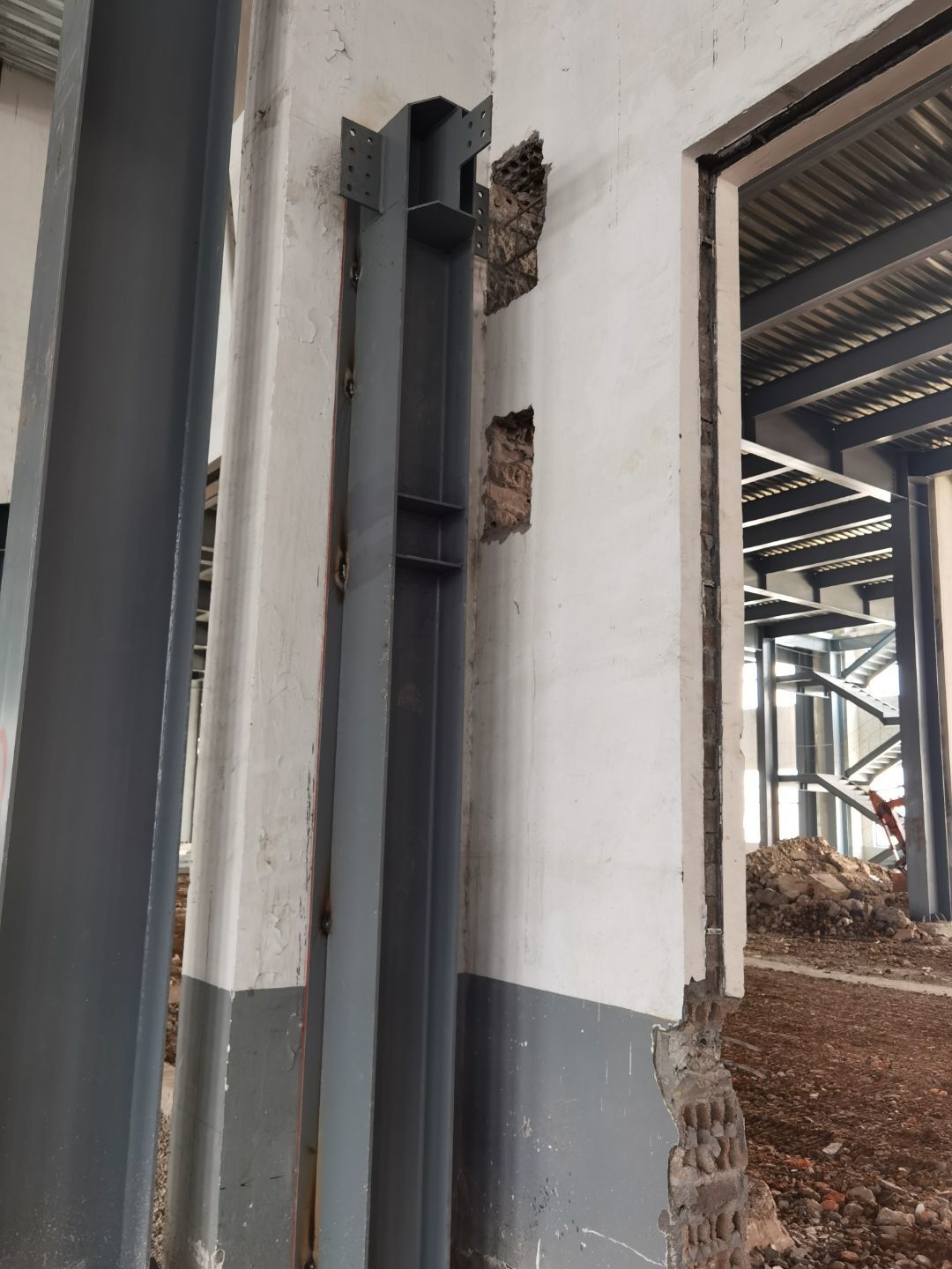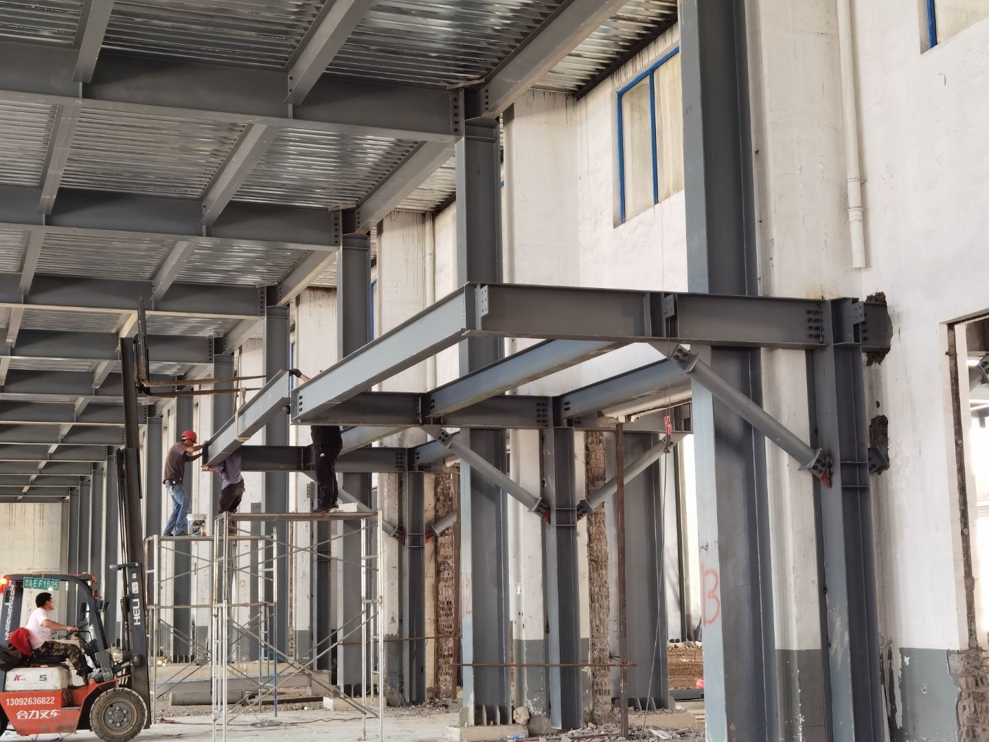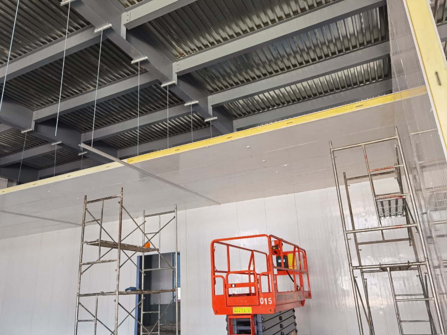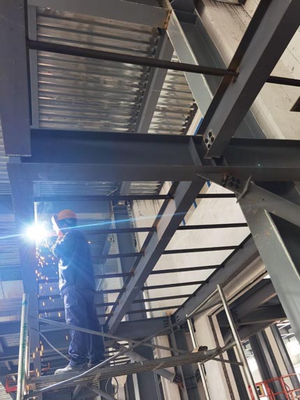 1,一樓彩板吊筋安裝 2,一樓鋼構(gòu)頂刷漆 3,一層鋼構(gòu)平臺焊接施工 4,一樓凍庫門體安裝 5,一樓空調(diào)新風(fēng)管吊裝 6,門衛(wèi)室墻體砌筑 7,電梯施工