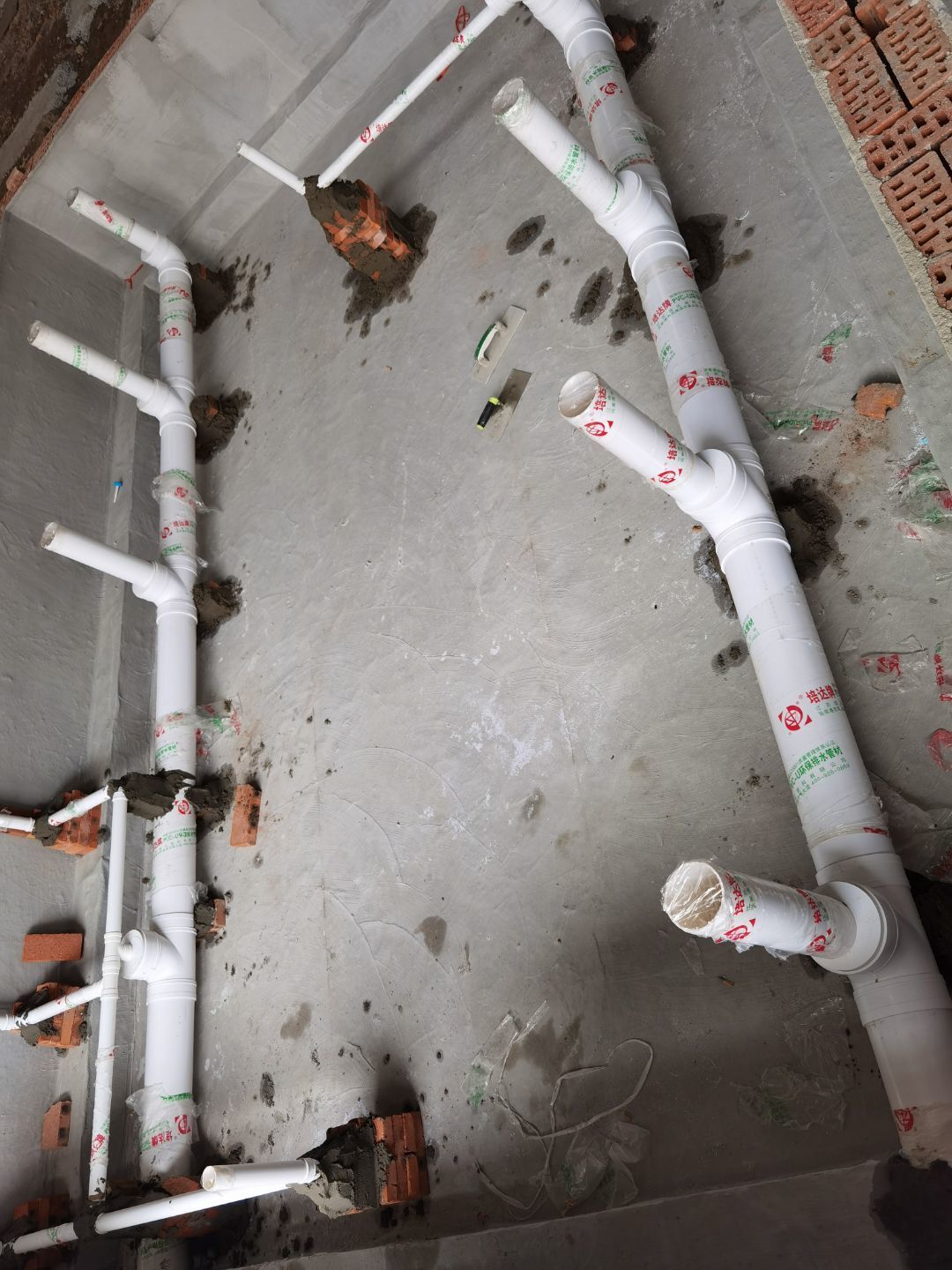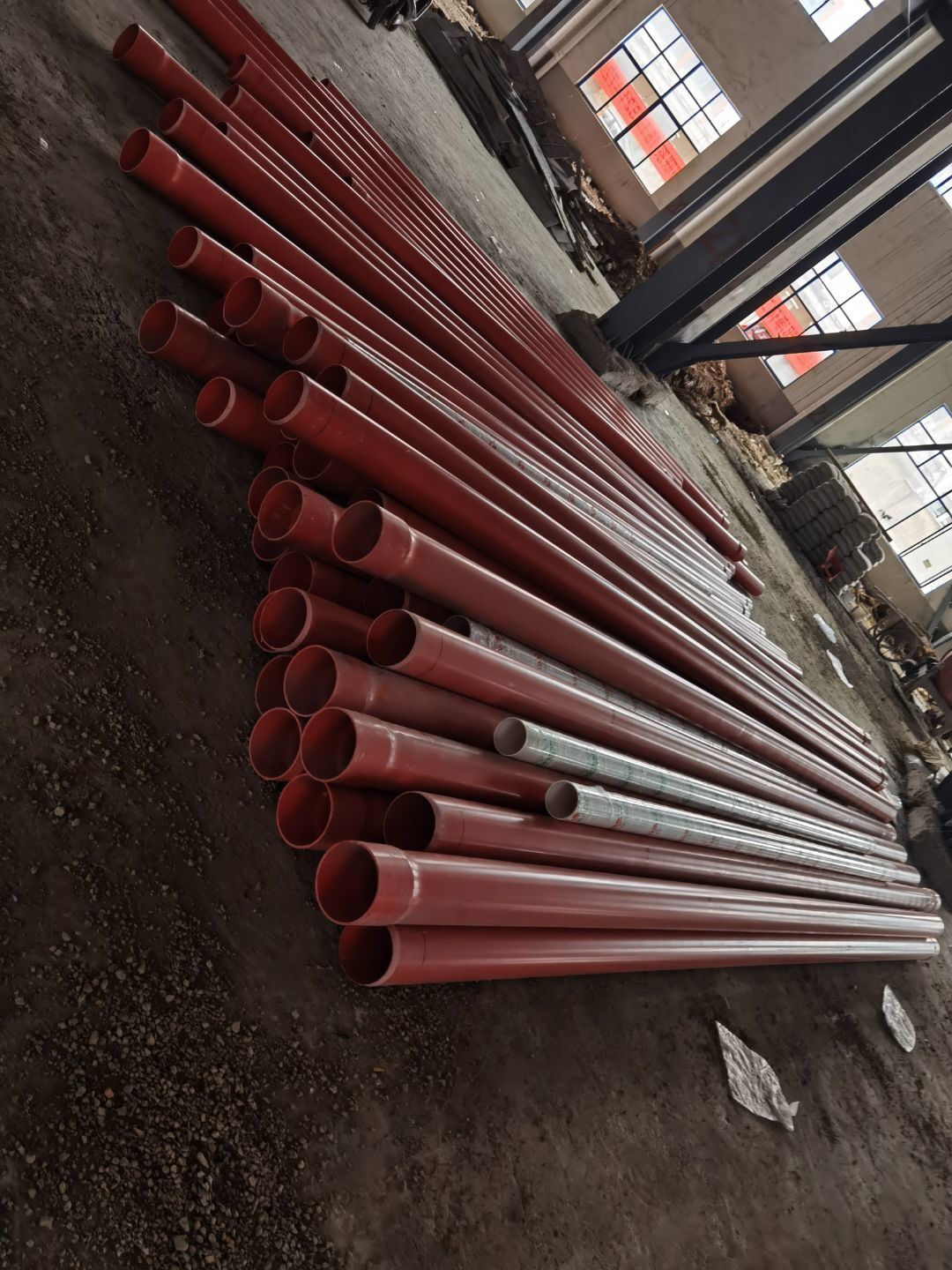 今日施工內(nèi)容 1,排水管安裝 2,消防材料吊裝 3,凍庫板材 安裝 4,廁所墻體砌筑 5,混凝土施工 今日材料進(jìn)場 消防管 商混