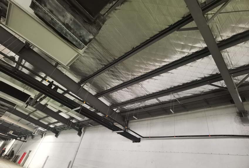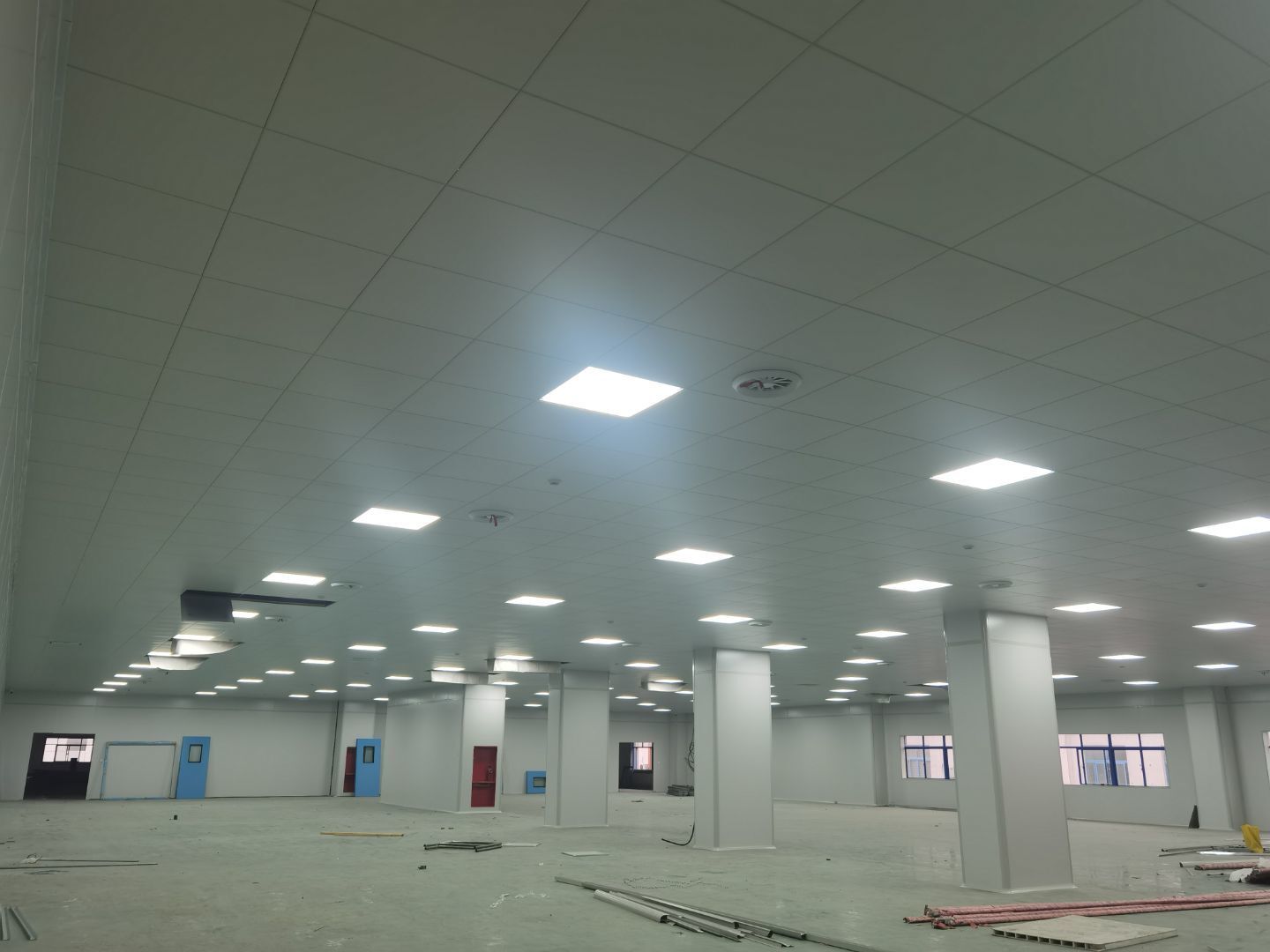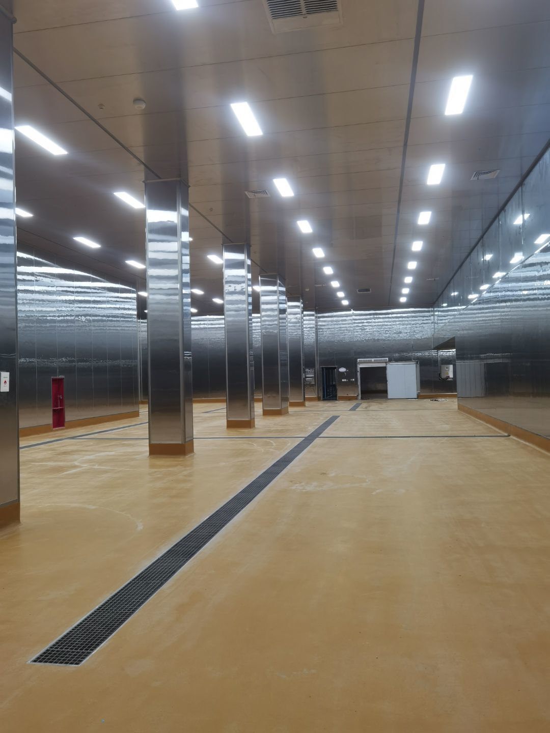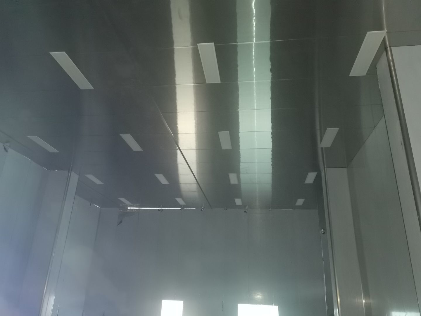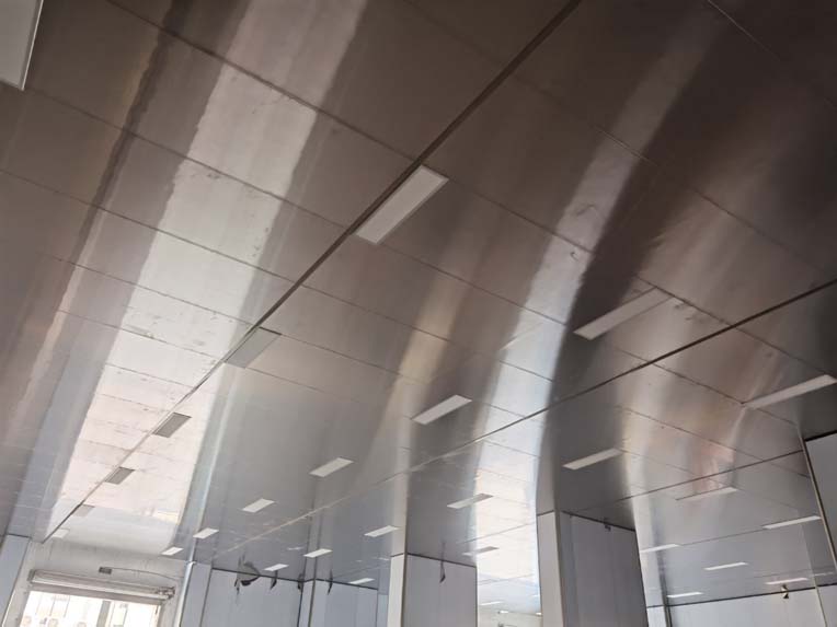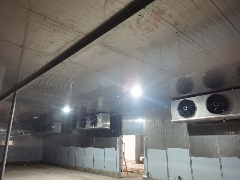 今日施工內(nèi)容 1,彩板拍圓弧 打膠 2, 二層鋁扣板安裝 3,二層風(fēng)管軟接 4,一層地坪施工 5,凍庫冷媒管安裝 6,二層墻板安裝 7,一層消防煙感安裝 8,蒸汽管道施工 9,門體安裝 今日材料進(jìn)場 彩板 消防主水管 工藝設(shè)備