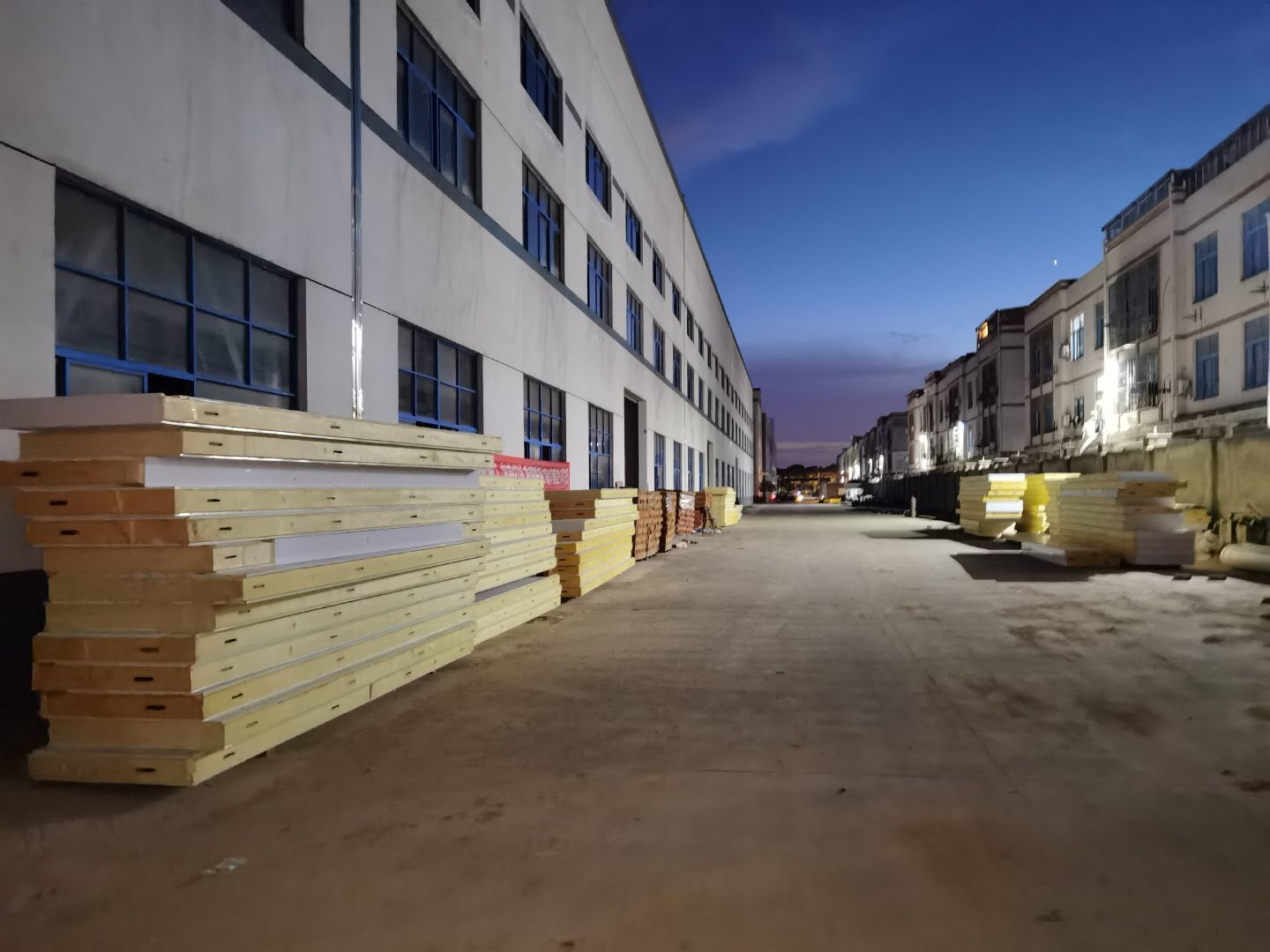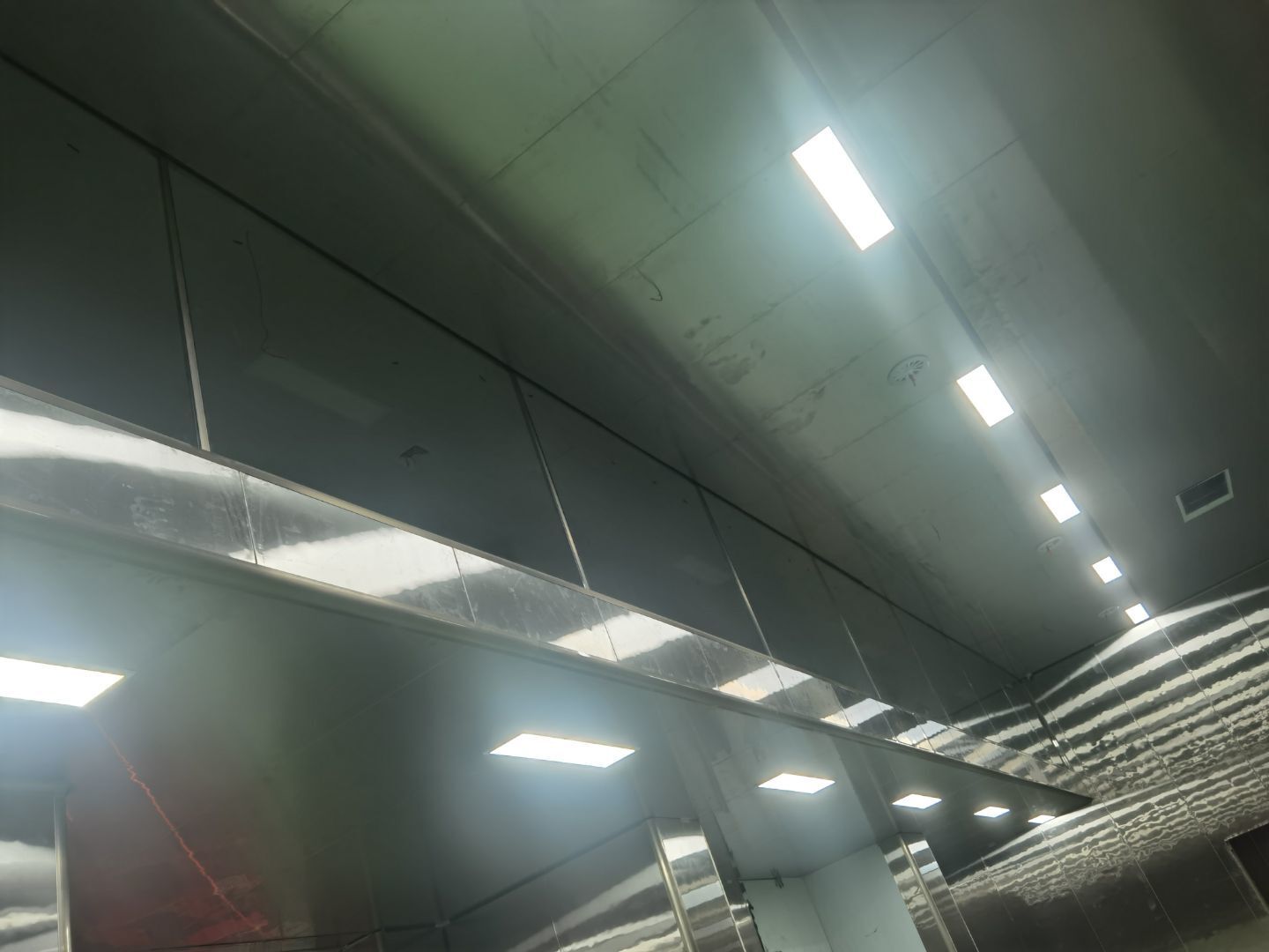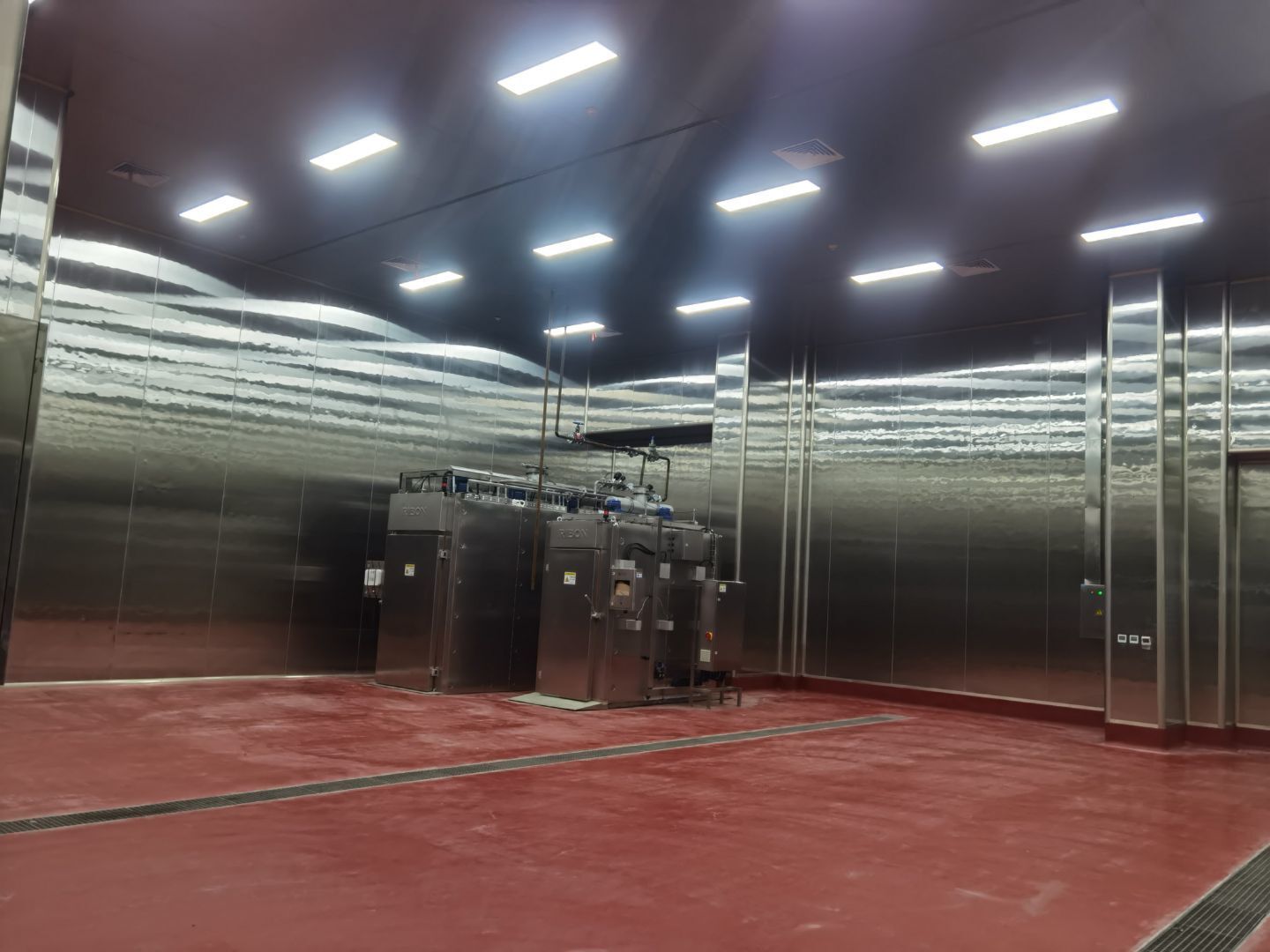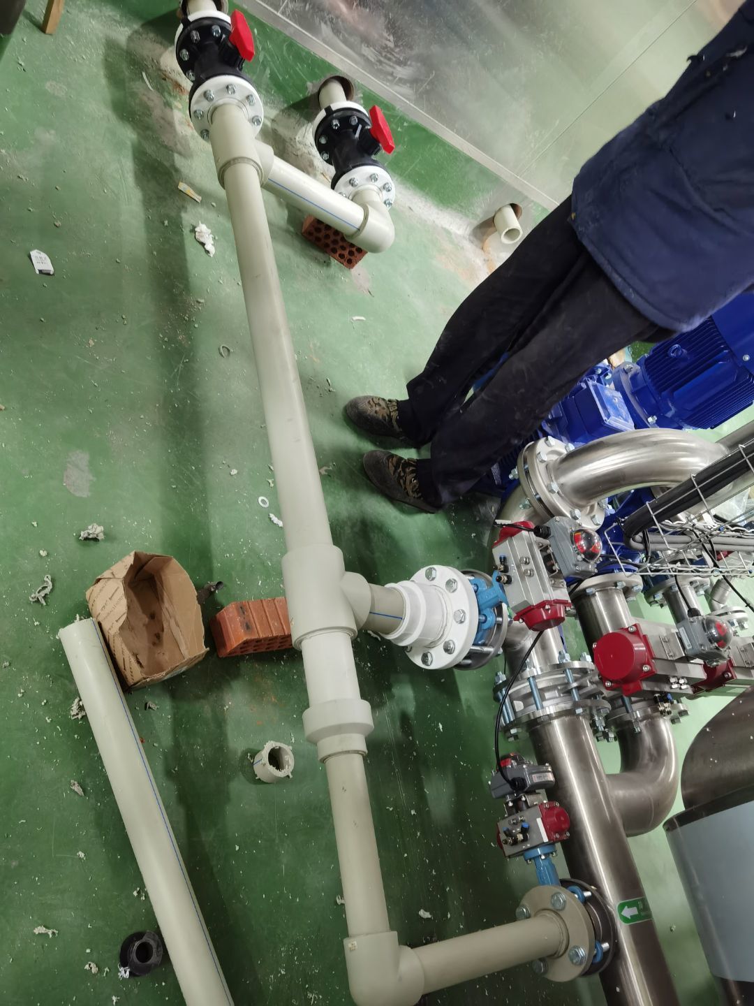 今日施工內(nèi)容 1,彩板拍圓弧 打膠 2, 二層鋁扣板安裝 3,二層風(fēng)管軟接 4,一層地坪施工 5,凍庫冷媒管安裝 6,二層墻板安裝 7,一層消防煙感安裝 8,蒸汽管道施工 9,門體安裝 今日材料進(jìn)場 彩板 消防主水管 工藝設(shè)備