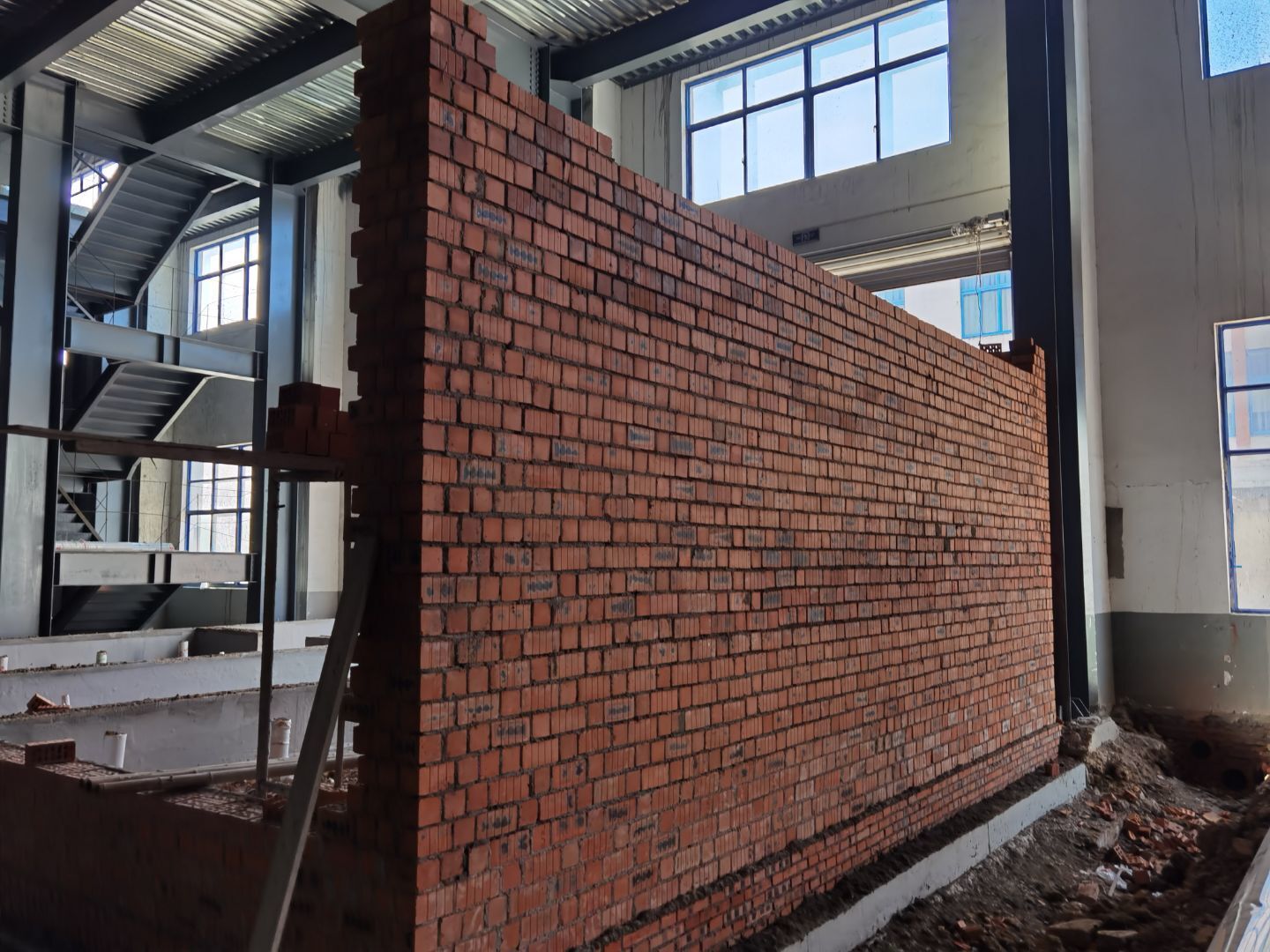 1,二樓消防噴淋試水打壓 2,二樓空調(diào)風(fēng)管搬運(yùn) 3,一層鋼構(gòu)施工 4,一層防排煙施工 5,擋水墻砌筑抹灰 7,一層消防水管安裝 8,一層門洞砌筑 9,一層空調(diào)水支架安裝 10,彩板人員到場