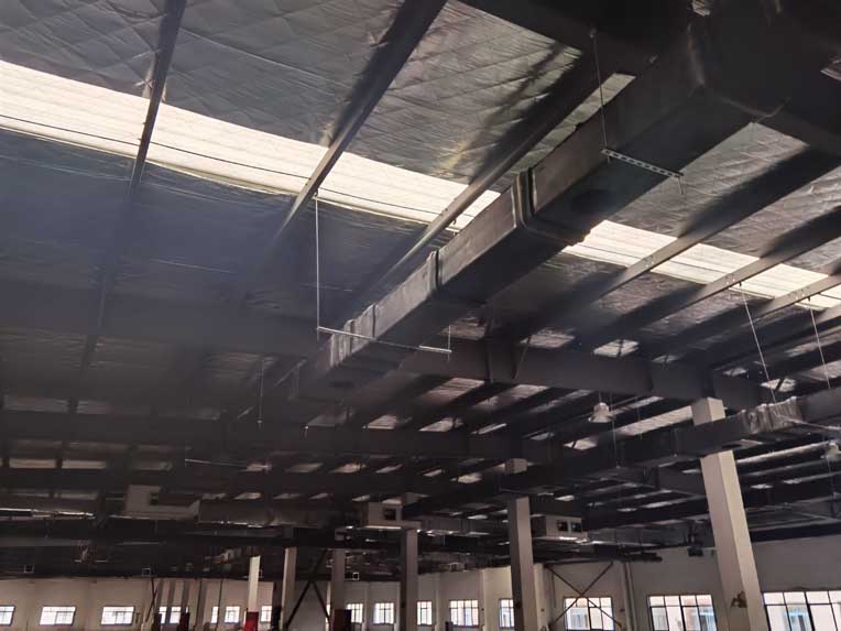 今日施工內(nèi)容 1,彩板墻頂板安裝 2,一層擋水墻抹灰 3,一層動力電橋架安裝 4,一層地坪施工 5,外墻真石漆施工 6,一層照明安裝 7,一層風(fēng)管保溫安裝