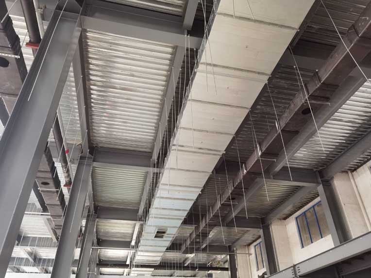 1,一樓地槽 彩板安裝 2,一樓消防立管安裝 3,一層鋼構(gòu)平臺施工 4,一層擋水墻抹灰 5,樓層鋼構(gòu)焊接 加固 6,一層空調(diào)水管保溫 7,一層防排煙施工 8,二樓地槽 彩板安裝