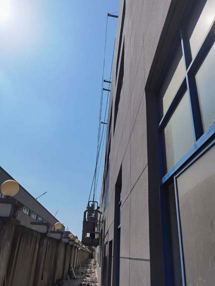今日施工內(nèi)容 1,彩板立板安裝 打膠條 2,二樓動力電橋架安裝 3,一樓電梯安裝 4,一層燈具布線管 5,一層消防水管安裝 6,西面室外外墻噴真石漆 7,南面鋼結(jié)構(gòu)施工 8,地坪開始施工