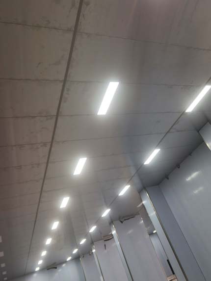 今日施工內(nèi)容 1,一二層彩板墻頂板安裝 2, 彩板打膠 拍圓弧 3,一層地坪施工 4,二層空調(diào)回風(fēng)箱安裝 5,二層空調(diào)吊柜 盤管放線 6,電梯施工 7,樓梯貼磚 8,鋁扣板絲桿吊裝