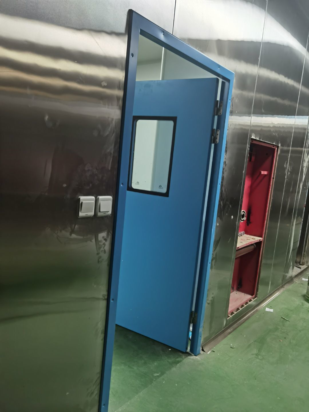 今日施工內(nèi)容 1,防撞柱安裝 2, 保潔 3,不銹鋼水管安裝 4,配電箱安裝及壓線頭 5,插座開孔 下線 6,二樓窗邊包套 7,門體安裝 8,二樓鋁扣板龍骨吊裝 9,空壓管道安裝 10,凍庫收尾 今日材料進(jìn)場 空壓機(jī) 湯鍋