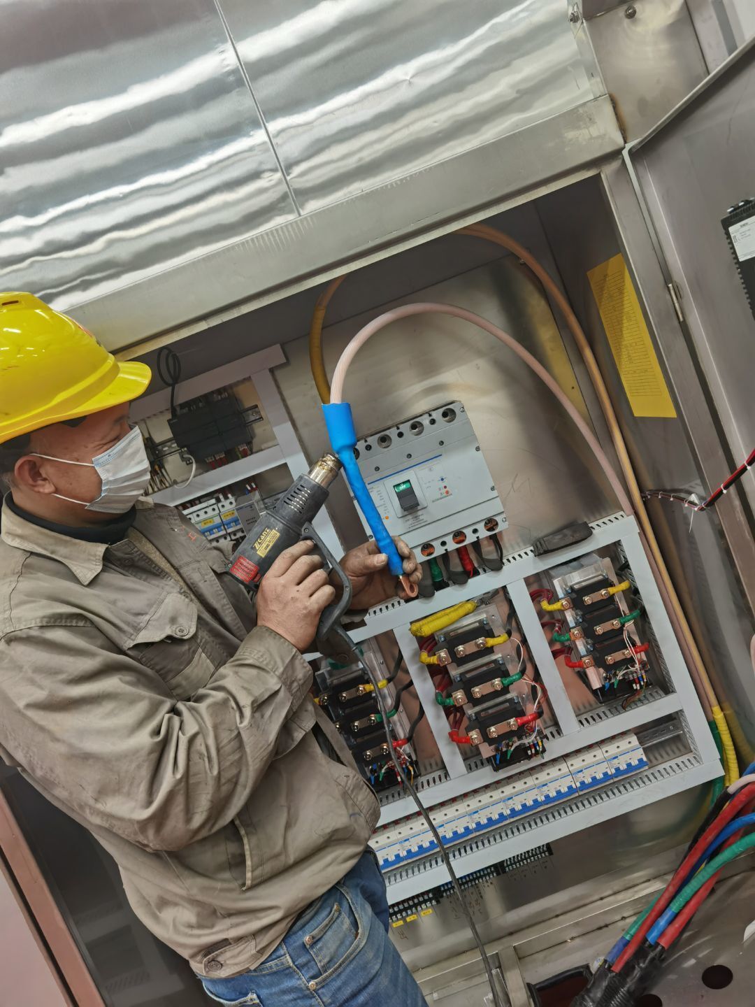 今日施工內(nèi)容 1.二層彩板安裝 2, 一層門體安裝 3,監(jiān)控施工布線 4,參觀通道原子灰開始補(bǔ)縫 5,設(shè)備就位 6,配電箱壓線頭 7,二樓煙感安裝 8,室外污水池墊層澆筑