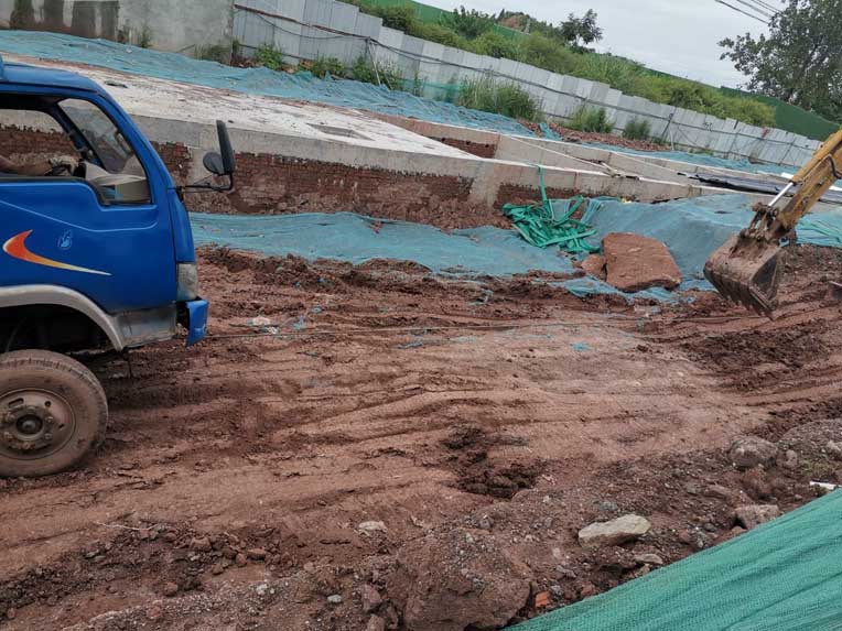 排水溝開挖完工、洞庫開開挖完工,土建人員進場、材料進場。