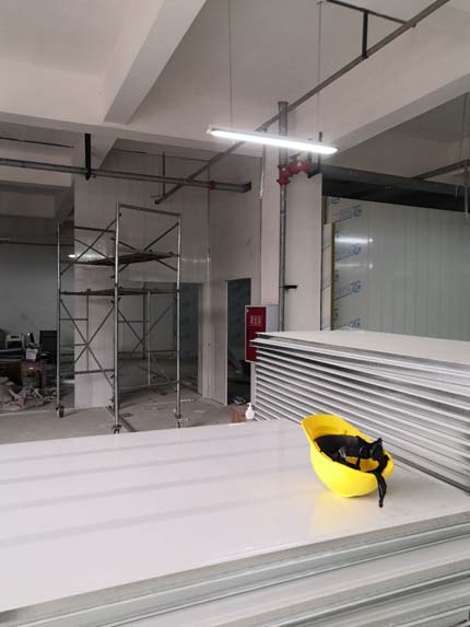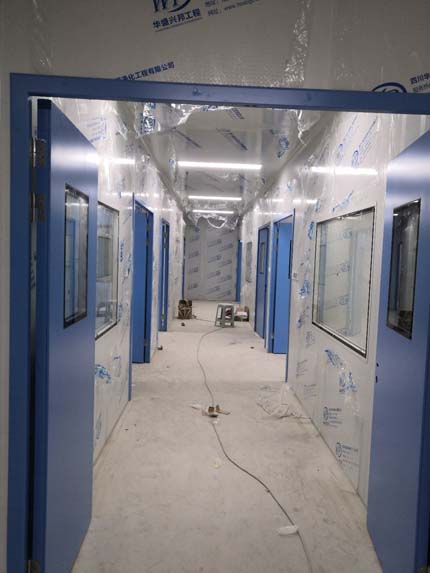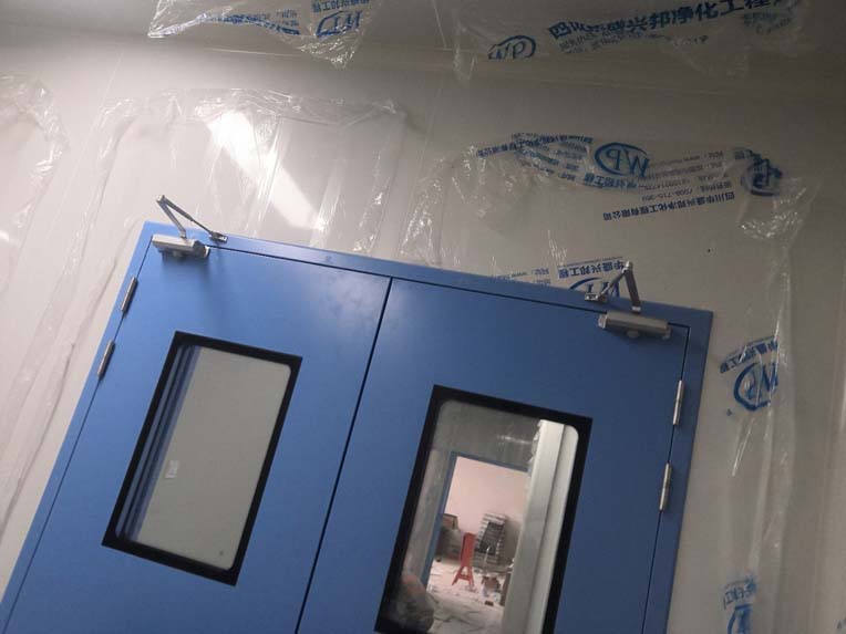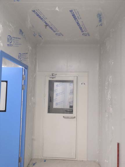 1.風淋室安裝完成 2.成品門鎖安裝完畢100% 3.成品門膠條安裝完成100% 4.工況燈安裝完成95% 5.插座安裝完成100%