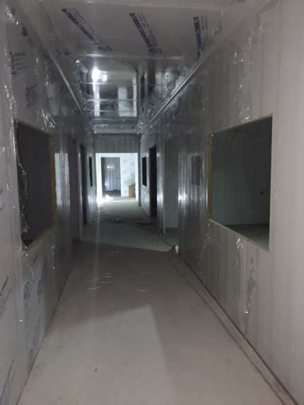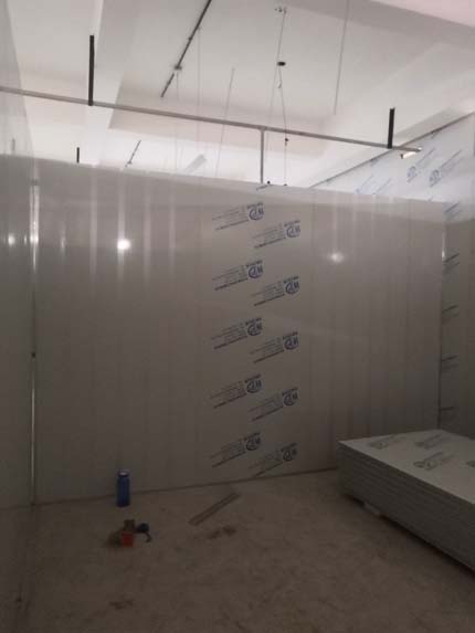 1、板縫,圓弧打膠完成90% 2、觀察窗開洞完成100% 3、電工插座開洞完成100%