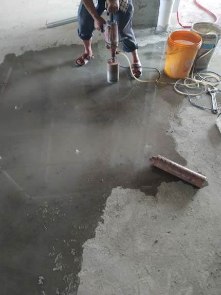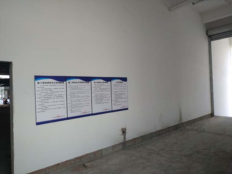 地漏開孔完成,施工現場:橫幅,配電箱,制度牌安裝