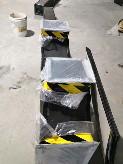 土建工人砌防水墻,門安裝已完成