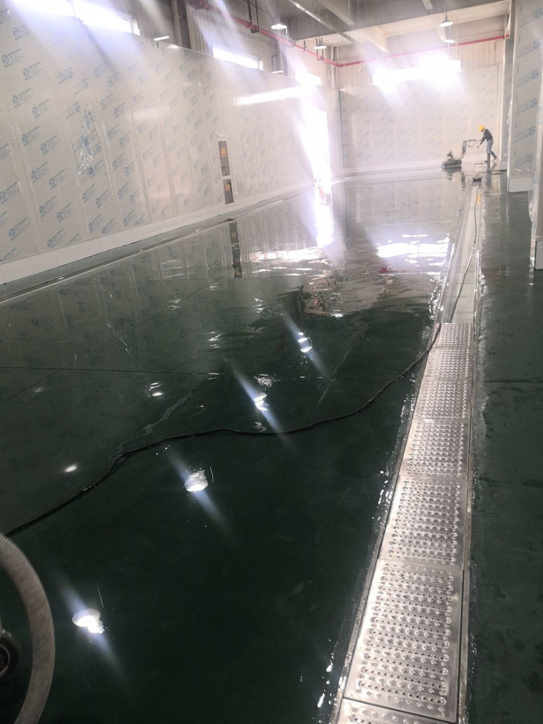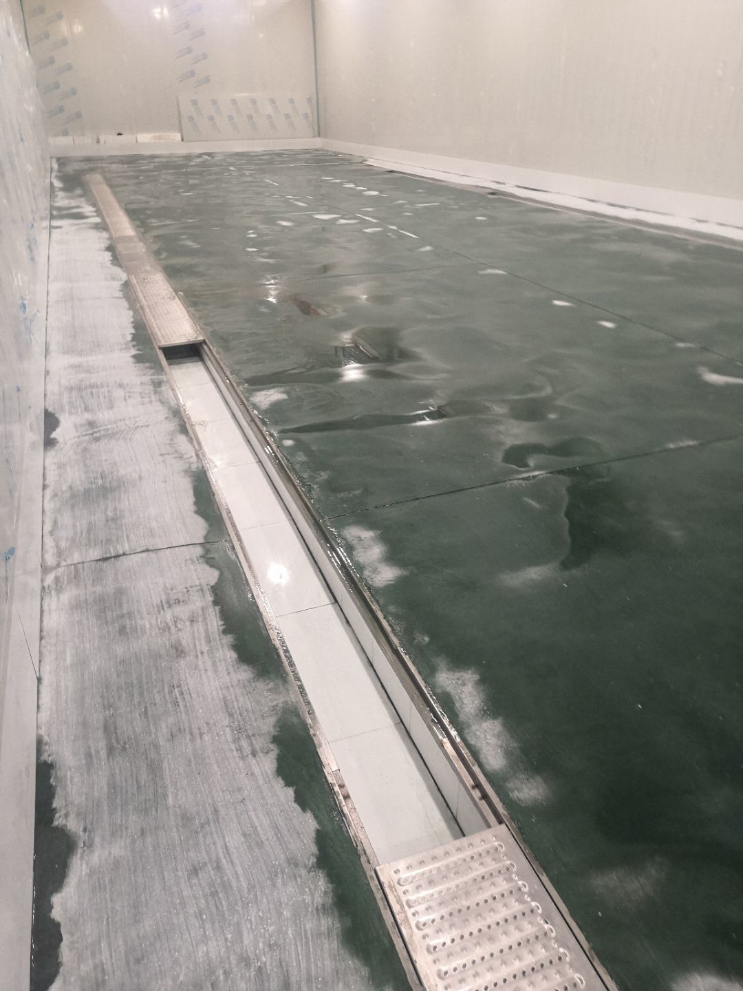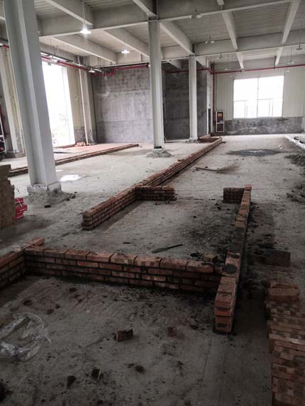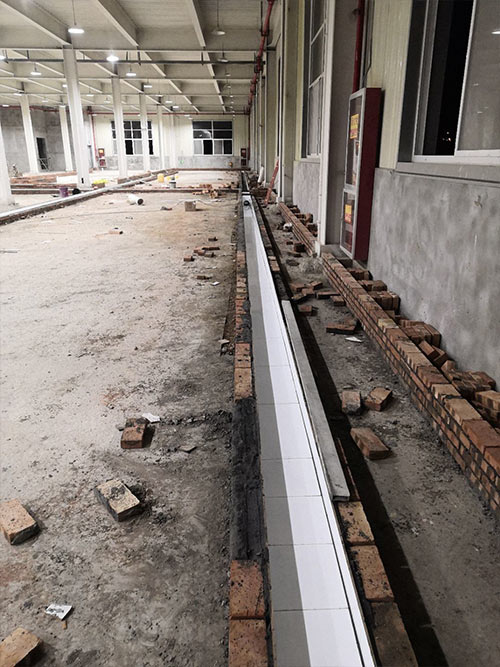1.土建墻開(kāi)門洞 2.不銹鋼溝邊條焊接加固 3.排水管不銹鋼溝邊條,不銹鋼蓋板安裝, 4.排水管貼瓷磚