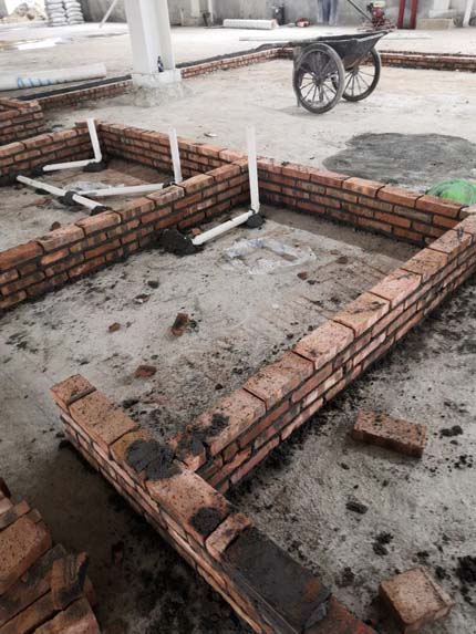 1.排水管砌磚完成 2.砌擋水墻 3.排水管安裝 4.排水溝抹灰