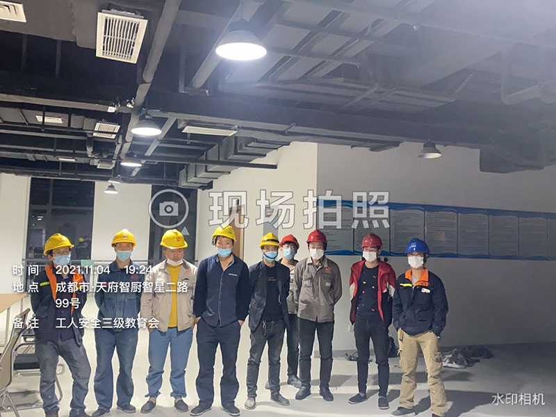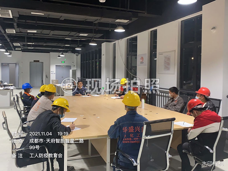 工人現場開會安全會議,甲方圖審,安全標識標牌張貼