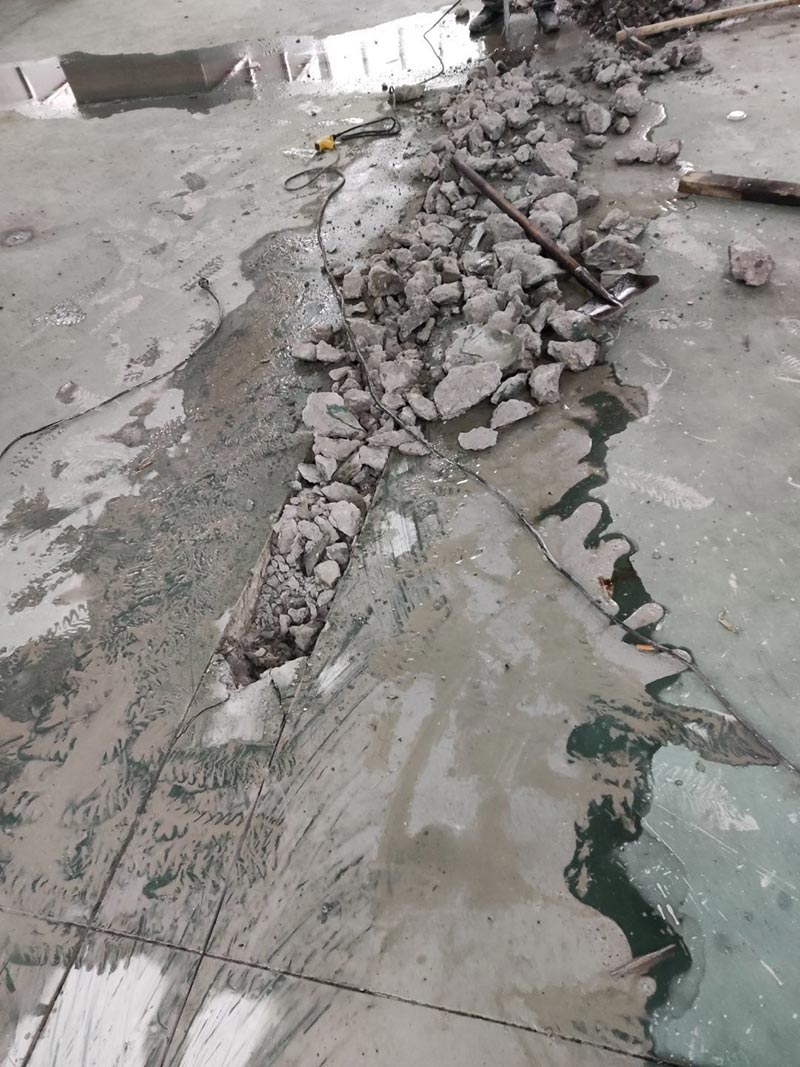 排水管地面切割完成,破碎完成40%。