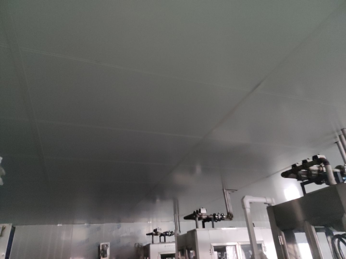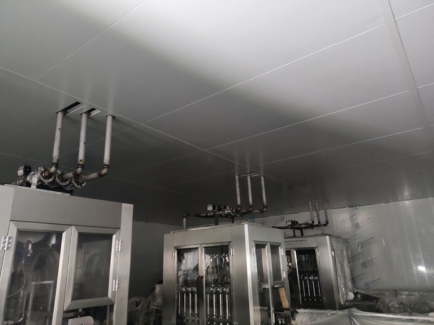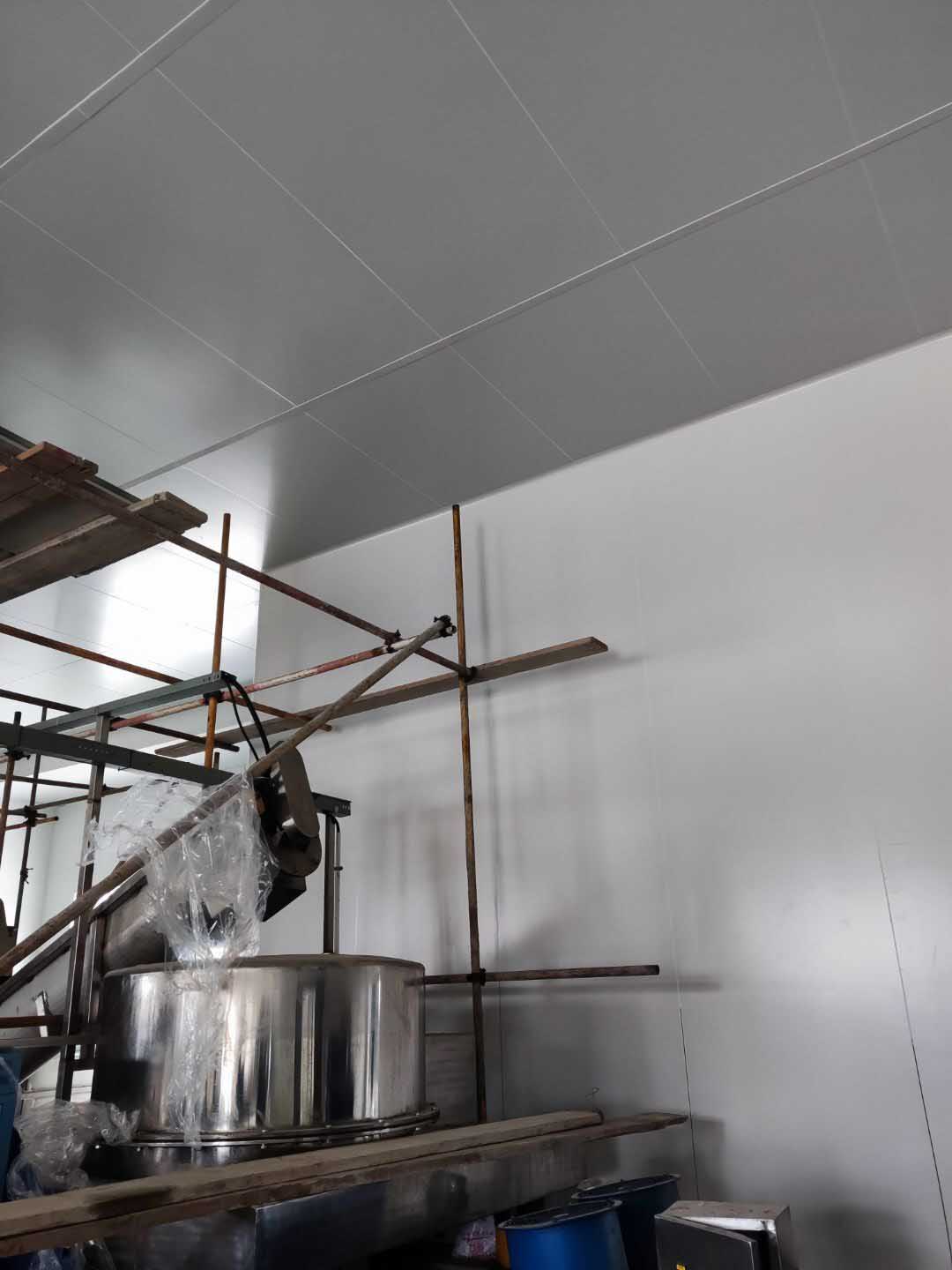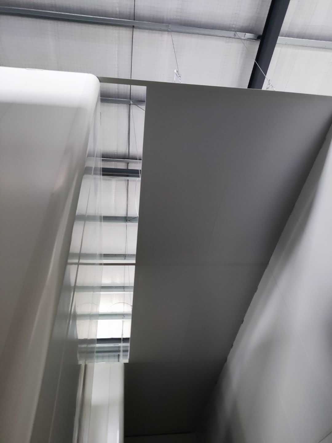 灌區頂板安裝完成60%;煉油間燈具安裝完成,換氣扇進氣百葉開孔完成,換氣扇進氣百葉安裝完成。