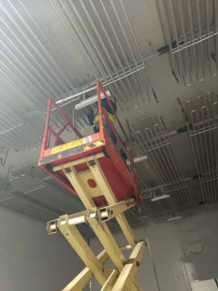 今日施工內(nèi)容: 1、裝修水電安裝施工作業(yè)。 2、銅管件焊接施工作業(yè) 3、庫頂無縫鋼管作業(yè) 4、橋架安裝,閥門安裝, 5、制冷管保溫。 6、凍庫電線布置。 7、彩鋼圓弧施工作業(yè) 8、速凍庫鋼板安裝 9、、設(shè)備基礎(chǔ)混凝土施工 10、速凍庫風(fēng)機(jī)支撐加固。’ 11、防撞桿制作焊接施工作業(yè)