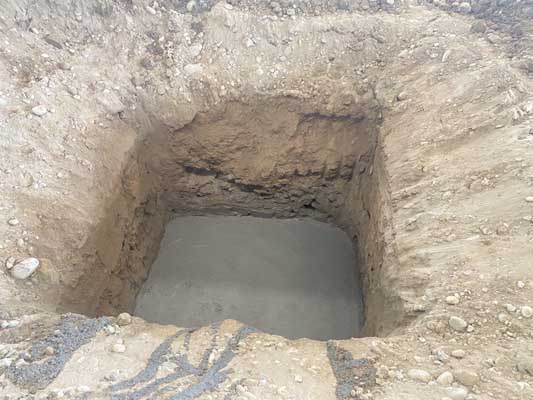 ①之前的基坑回填完成。②新基坑放線完成。③新基坑開挖完成百分之三十五。