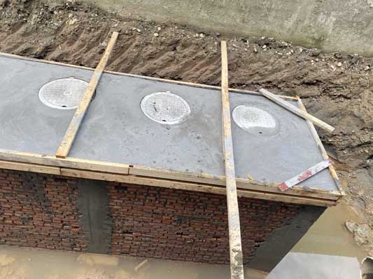 ①地面鋼筋安裝施工完成百分之十二。②室外隔油池頂板混凝土澆筑完成百分之百。③室外隔油池頂板鋼筋安裝施工完成百分之百。