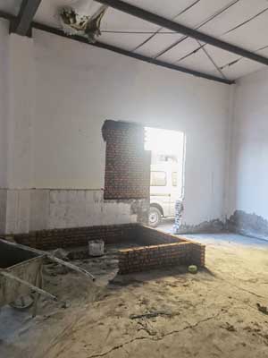 1.砌擋水墻,擋水墻抹灰 2.安裝排水管 3.不銹鋼水溝焊接