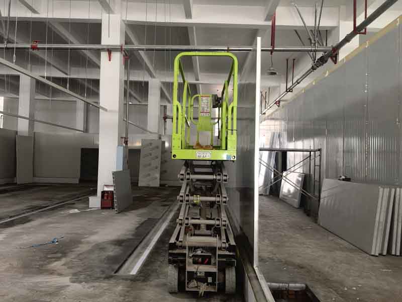 1,凍庫內外砌磚已完成 2,排水明溝貼瓷磚施工第1天,完成分項施工40% 3,擋水墻砌墻施工第5天,完成分項工作100% 4,擋水墻貼瓷磚施工第4天,完成分項施工進度80% 5,彩鋼板立墻板施工第2天,完成分項施工進度10%