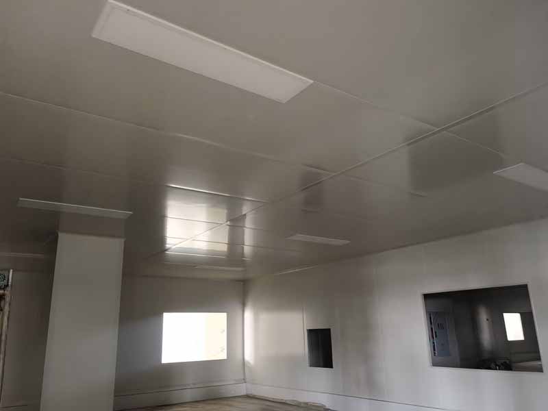1,彩鋼板吊頂第14天,完成分項進度80% 2,門、窗制作及安裝施工第7天,完成分項進度50% 3,彩鋼板收尾施工第6天,完成分項施工進度45% 4,風淋室制作及安裝施工第4天,完成分項施工進度70% 4,水,電施工第3天,完成分項施工20% 5,新風施工第1天,完成分項施工進度5%