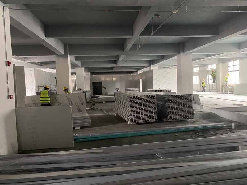 吊頂施工完成,地坪施工,設備進場安裝