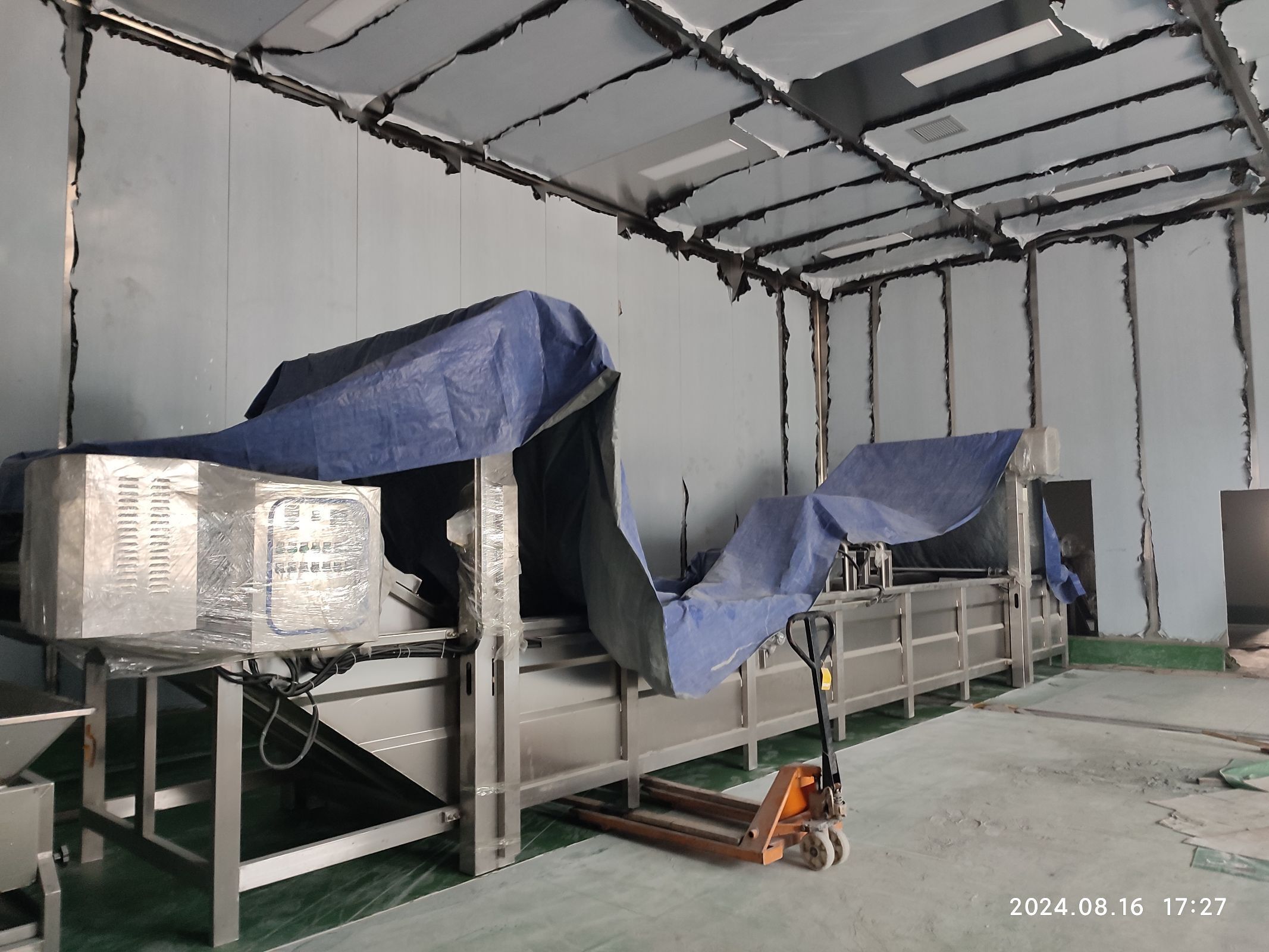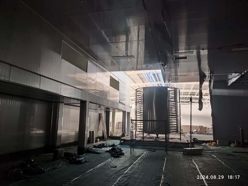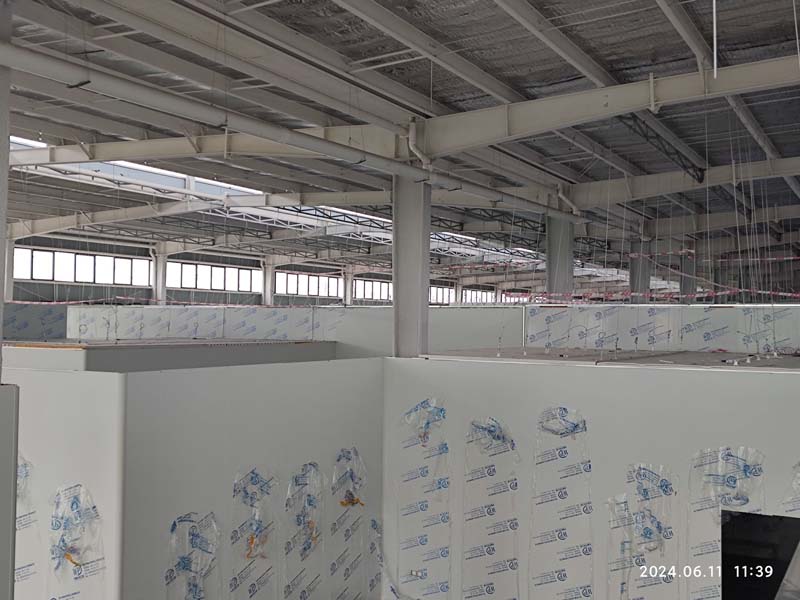 1、凍庫保溫板吊頂加固 2、聚氨酯擋水墻上墻 3、煮制間煙罩組裝 4、凍庫包柱 5、參觀通道通玻樣品下單 6、凍庫剪刀撐包柱施工