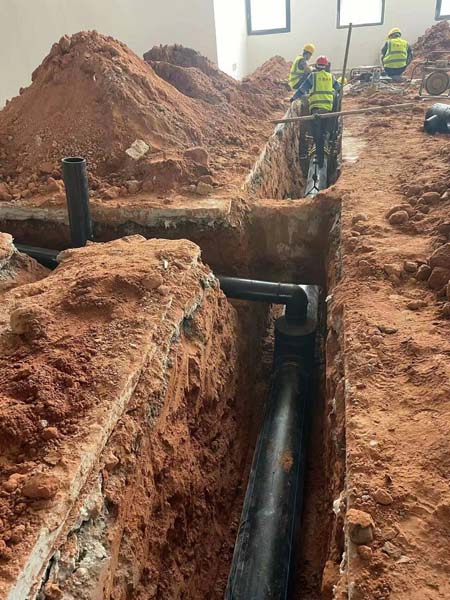 排水溝材料到場(chǎng),室內(nèi)外排水管道安裝