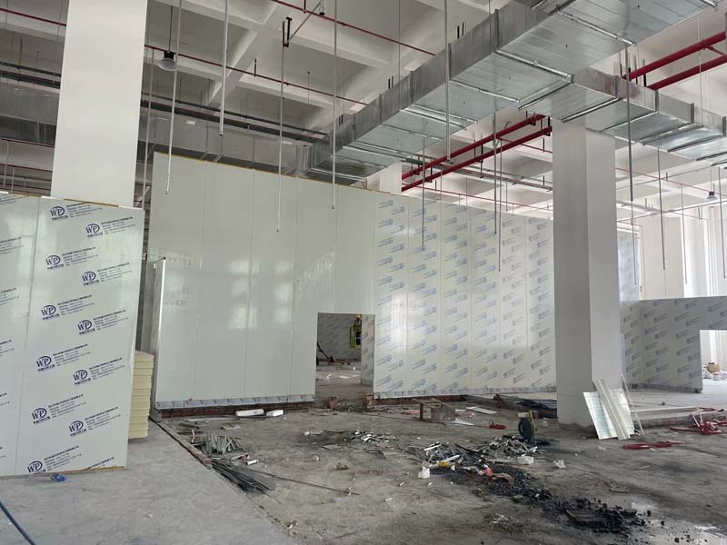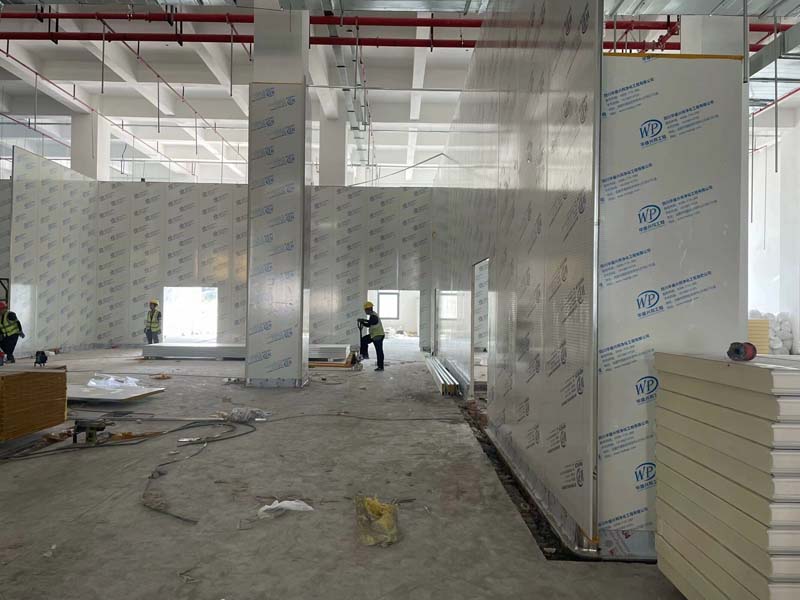 隔斷施工,凍庫(kù)保溫板材到場(chǎng)